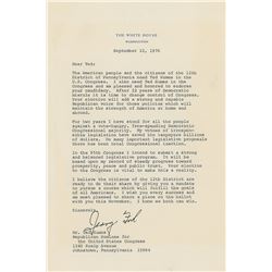 TLS as president signed “Jerry Ford,” one page, 7 x 10.5, White House letterhead, September 22, 1976. Letter to Ted Humes, Republican nominee for Cong