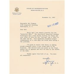 TLS signed “Jerry,” one page, 6.25 x 8.25, personal House of Representatives letterhead, November 14, 1967. Letter to California Congressman Del M. Cl