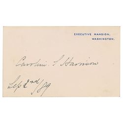 Executive Mansion card, neatly signed in ink as first lady, "Caroline S. Harrison, Sep. 2nd/89." In fine condition, with old mounting remn...