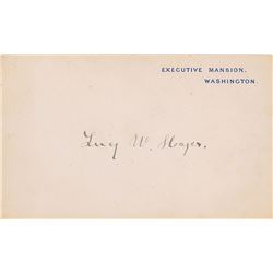 Very rare official Executive Mansion card, signed in ink by the first lady, "Lucy W. Hayes." In fine condition, with a hint of faint toning.