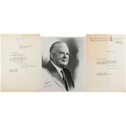 Three items signed by Hoover: a glossy 8 x 10 portrait, signed in fountain pen; a TLS, one page, personal letterhead, April 5, 1954, in part: "...