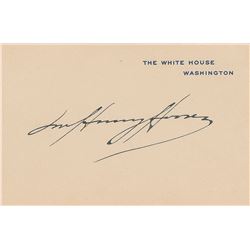 Official White House card, signed in fountain pen, "Herbert Hoover." In fine condition, with some small mounting remnants on the back. Acc...