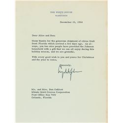 TLS as president, one page, 6.75 x 8.75, White House letterhead, December 23, 1964. Letter to Mr. and Mrs. Ben Oehlert, in part: "Many thanks f...