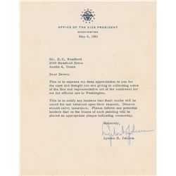 TLS as vice president, one page, 7 x 9, Office of the Vice President letterhead, May 6, 1961. Letter to Dewey Bradford, in full: "This is to ex...