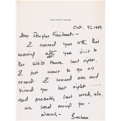 ALS as first lady, signed “Barbara,” one page, 6.5 x 8.5, White House letterhead, October 4, 1989. Letter to actor Douglas Fairbanks, Jr., in full: ...
