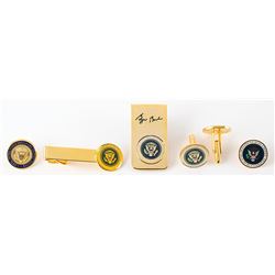 Five gold-tone men's presidential seal accessory gifts, each in its original box gilt-stamped with a Bush facsimile signature on the lid. Includ...
