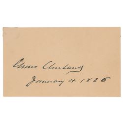 Two items: ink signature as president, "Grover Cleveland, January 4, 1896," on an off-white 3.5 x 2 slip; and an ink signature as first la...