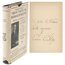 Signed book: Have Faith in Massachusetts. Second edition enlarged. Boston: Houghton Mifflin, 1919. Hardcover with dust jacket, 5.5 x 7.75, 275 pages.