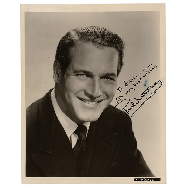 Handsome vintage glossy 8 x 10 photo of the smiling star, signed and inscribed in fountain pen, "To Susan—with very best wishes, Paul New...