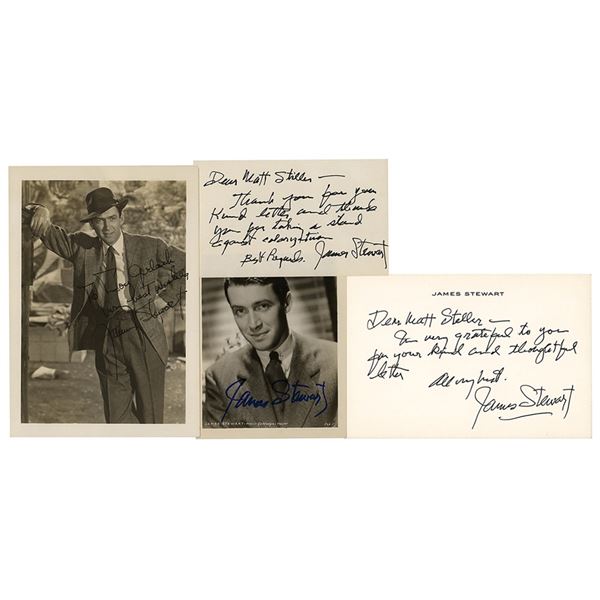 Four items signed by Stewart, including: a vintage matte-finish portrait of James Stewart in a three-quarter length pose, signed and inscribed in foun