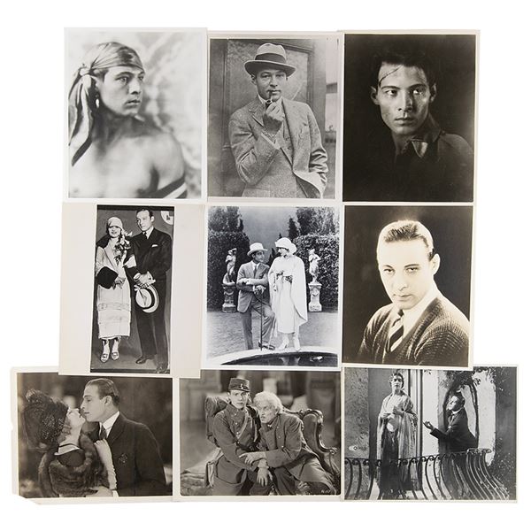 Collection of 125 mostly vintage photos celebrating the life of famed Italian silent film star and sex symbol Rudolph Valentino, most glossy with a fe