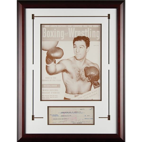 Broward National Bank check, 8 x 3, filled out in type and signed by Rocky Marciano with his given name, "Rocco F. Marchegiano," payable t...