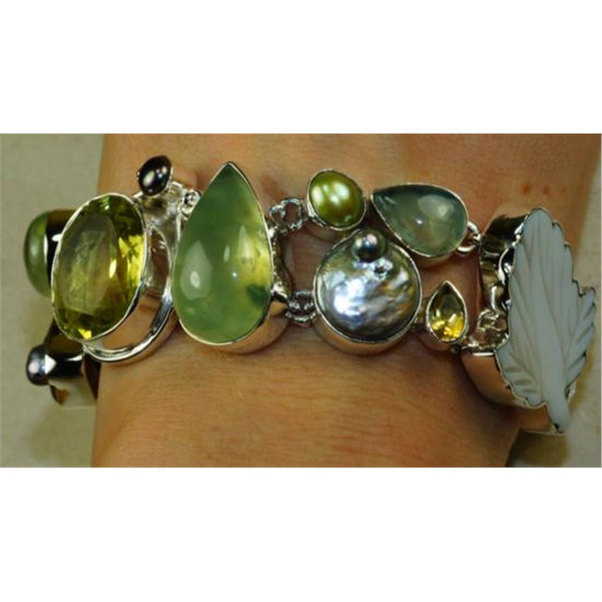 Fine CARVED AGATE SHELL, CITRINE & BIWA PEARL AND STERLING SILVER BRACELET, Length: 7 1/8in - 8 5/8in, Width: 1 1/8in
