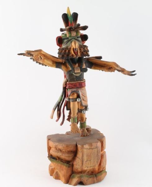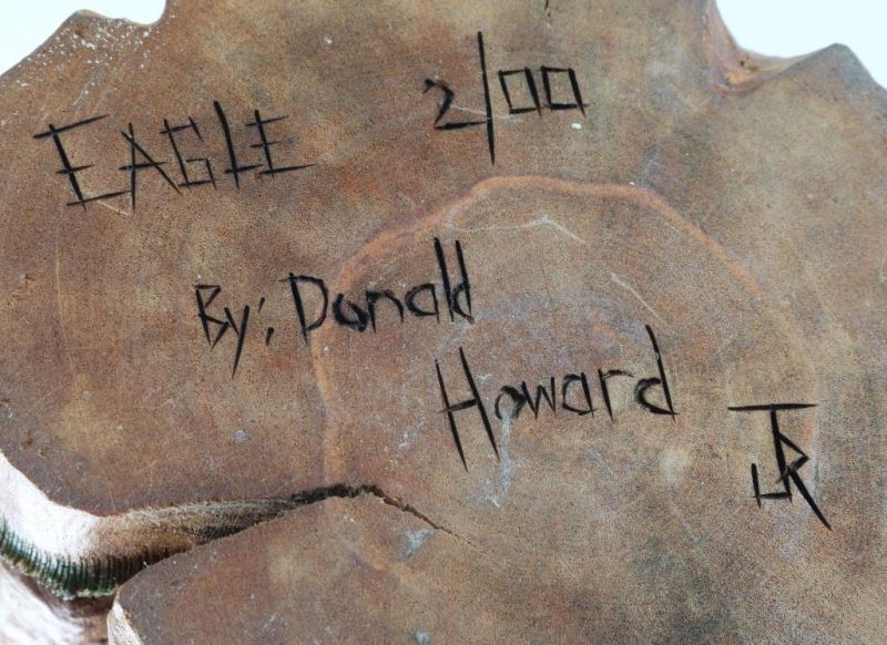 measuring approximately 16 ½” in height signed Eagle 2/00 by Donald Howard Jr. Some minor damage to feathers of one wing (Repairable)