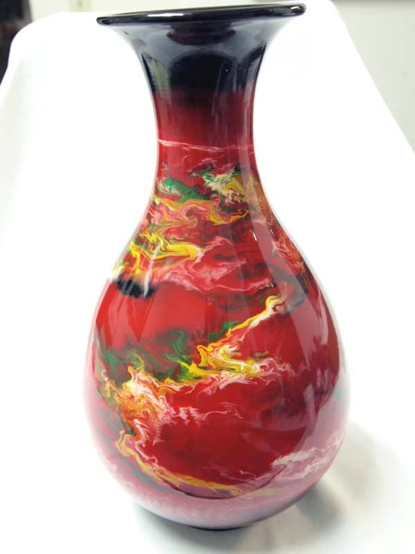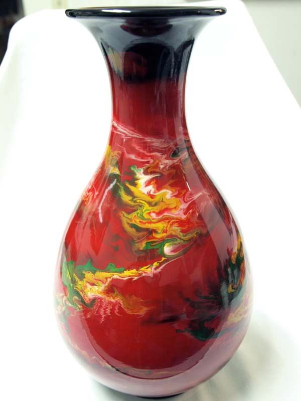 Fine Ceremonial Marbleized Pottery Vase, purchased in Seoul Korea, measures 8'' x 14'' and has stunning colors
