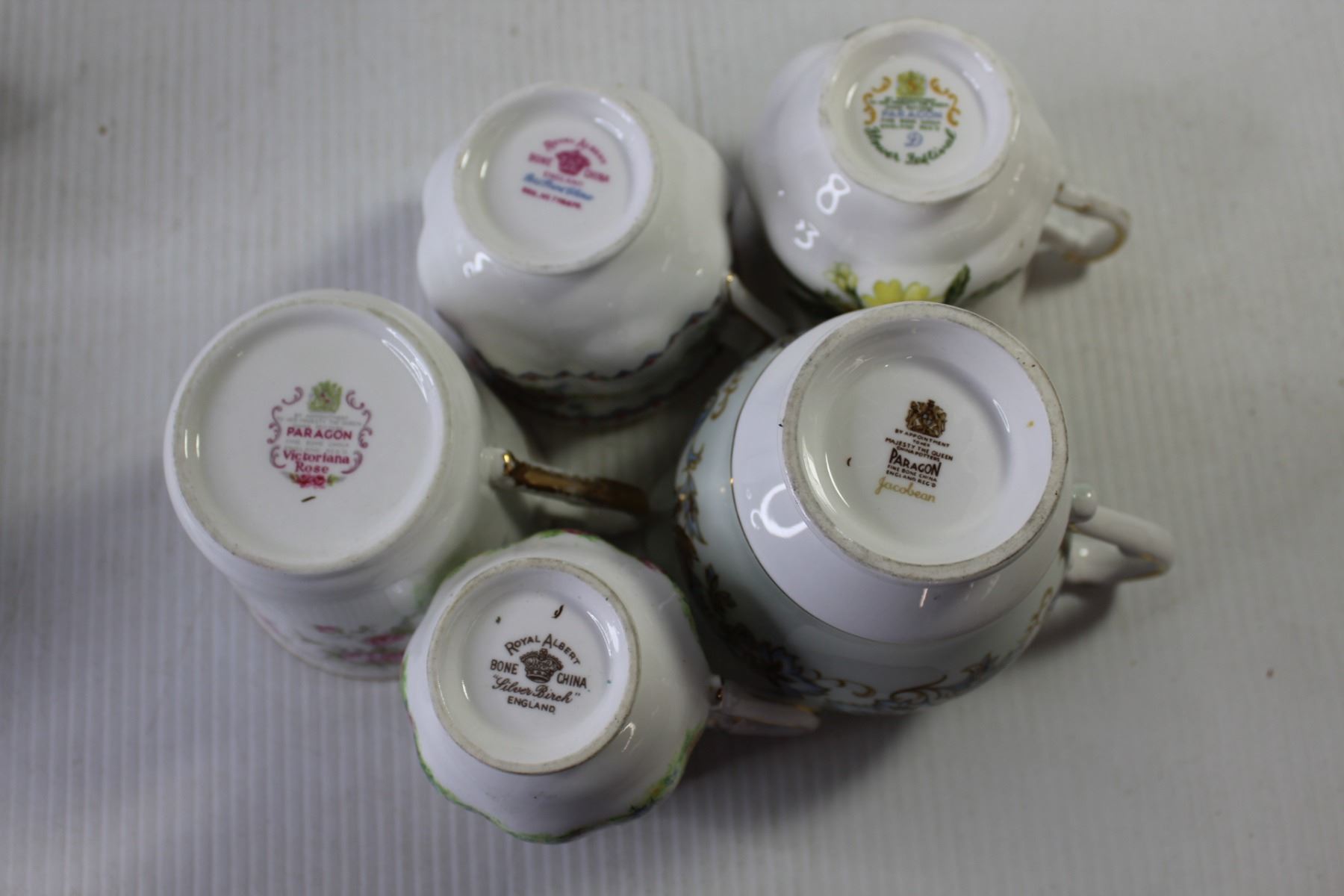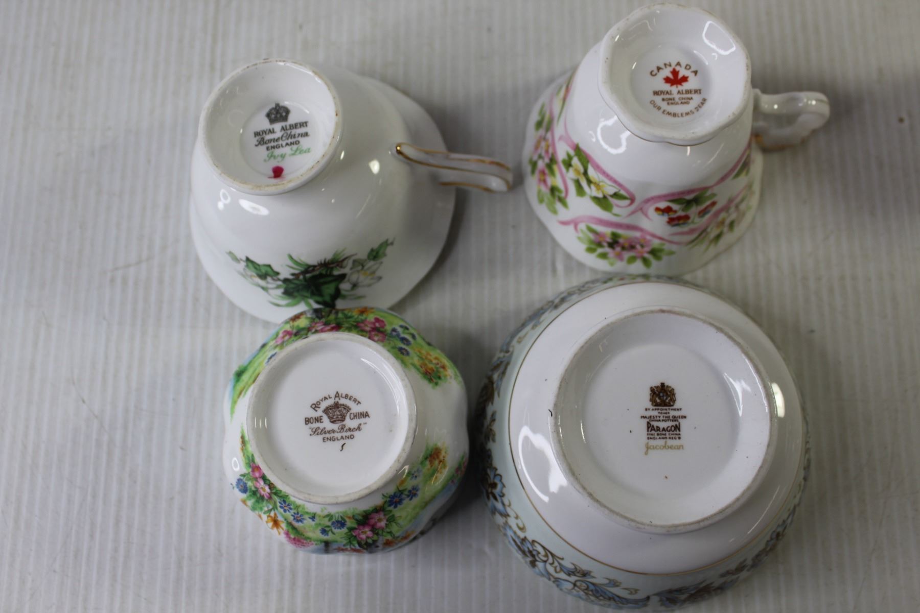 Fine China - (5) Teacups, (2) Cream & Sugar Holders (Paragon, Royal Albert)