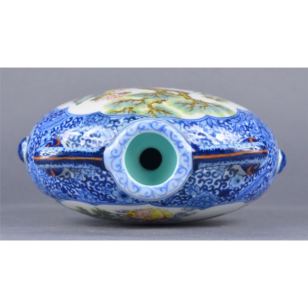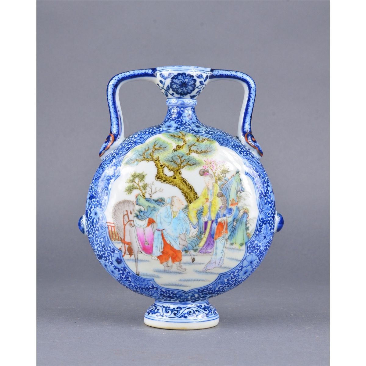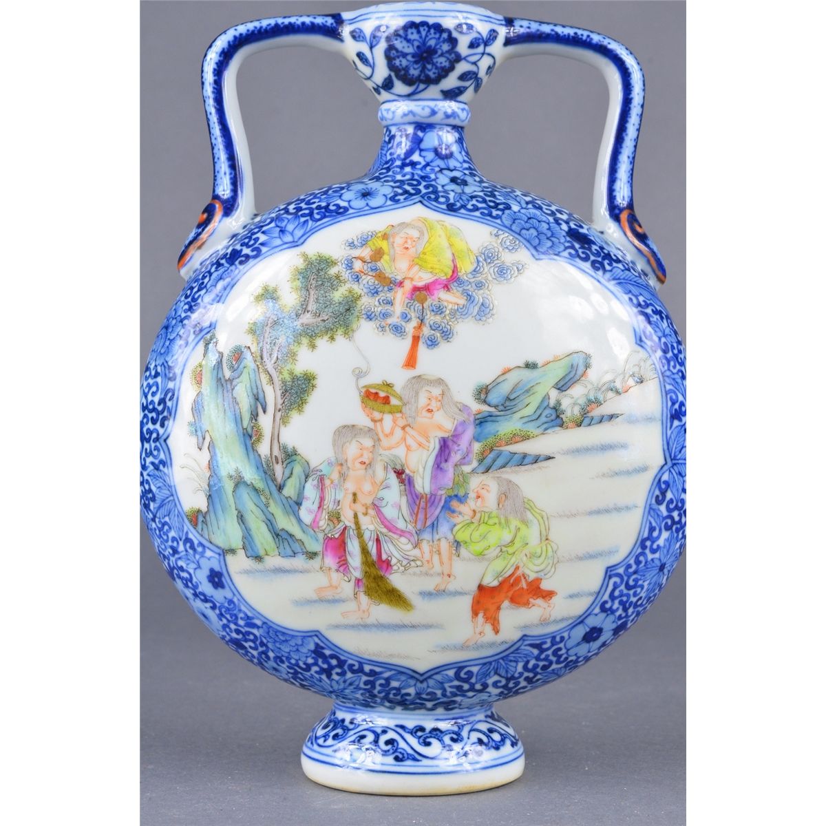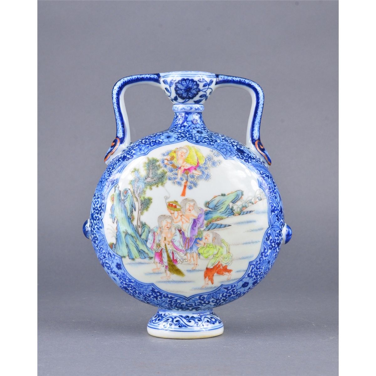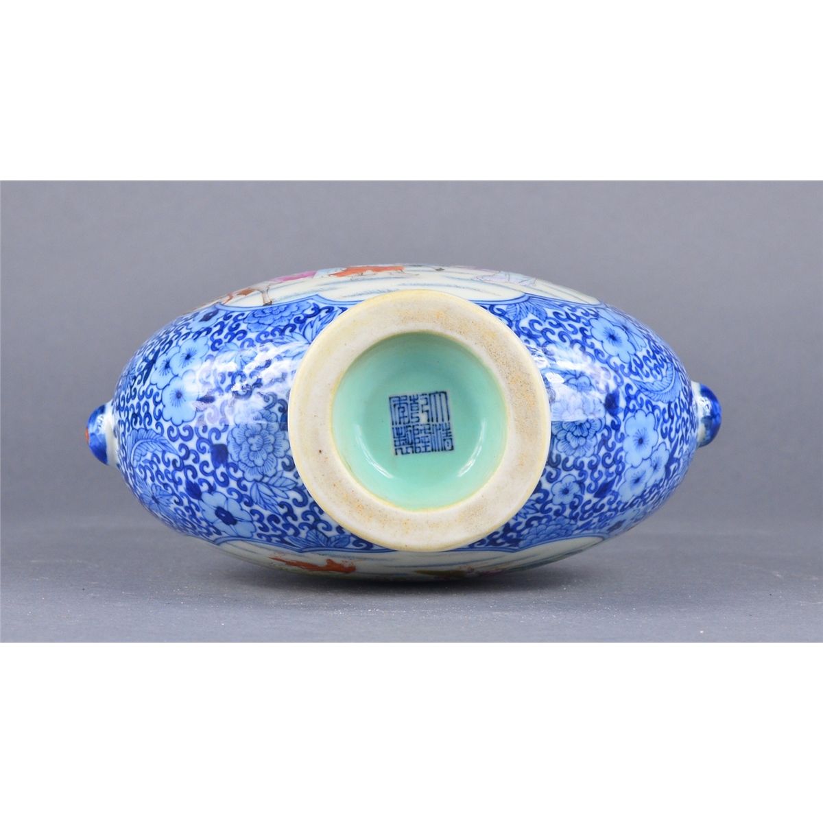 Fine Chinese blue and white porcelain flask, Qing Period/Republic; six-character Qianlong Mark on base; H: 20 cm, W: 16 cm