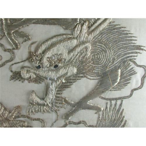 Fine Chinese Silver Thread Dragon Embroidery, #1842023