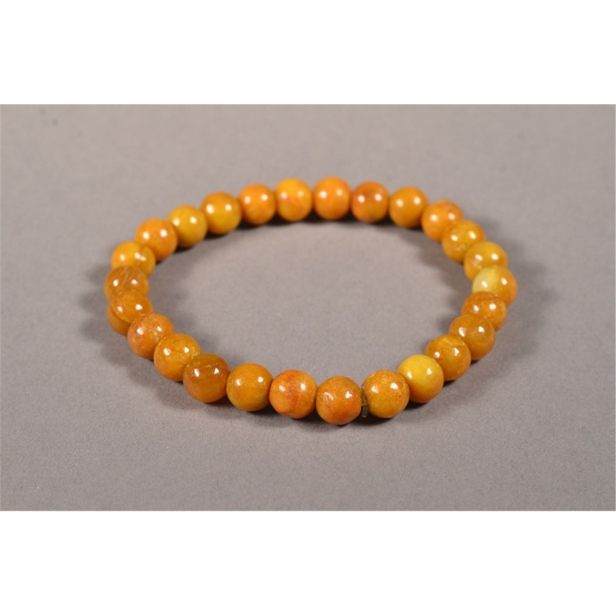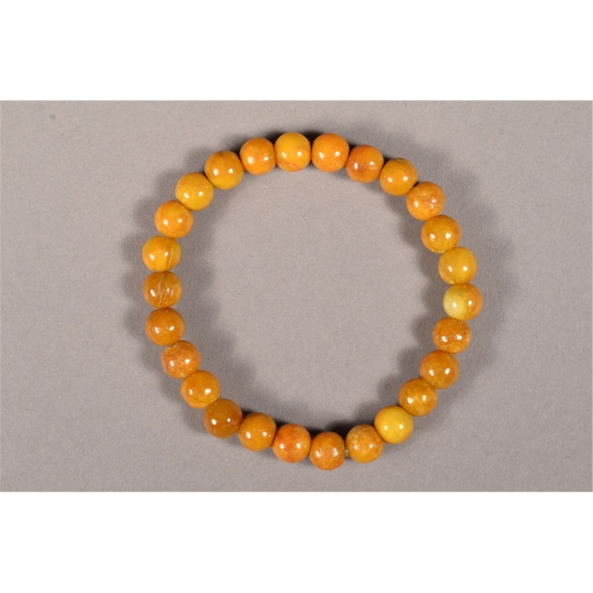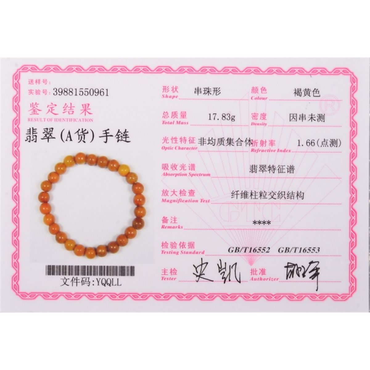 Fine Chinese yellow jadeite bracelet with certificate; L: 9 cm, 18 grams, 26 jade beads