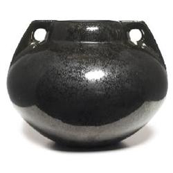 Fine Fulper vase, double handled form covered with a good black crystalline glaze, marked, 6.5”h