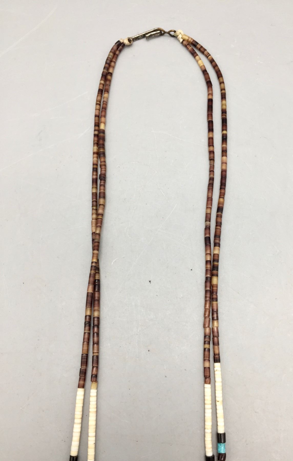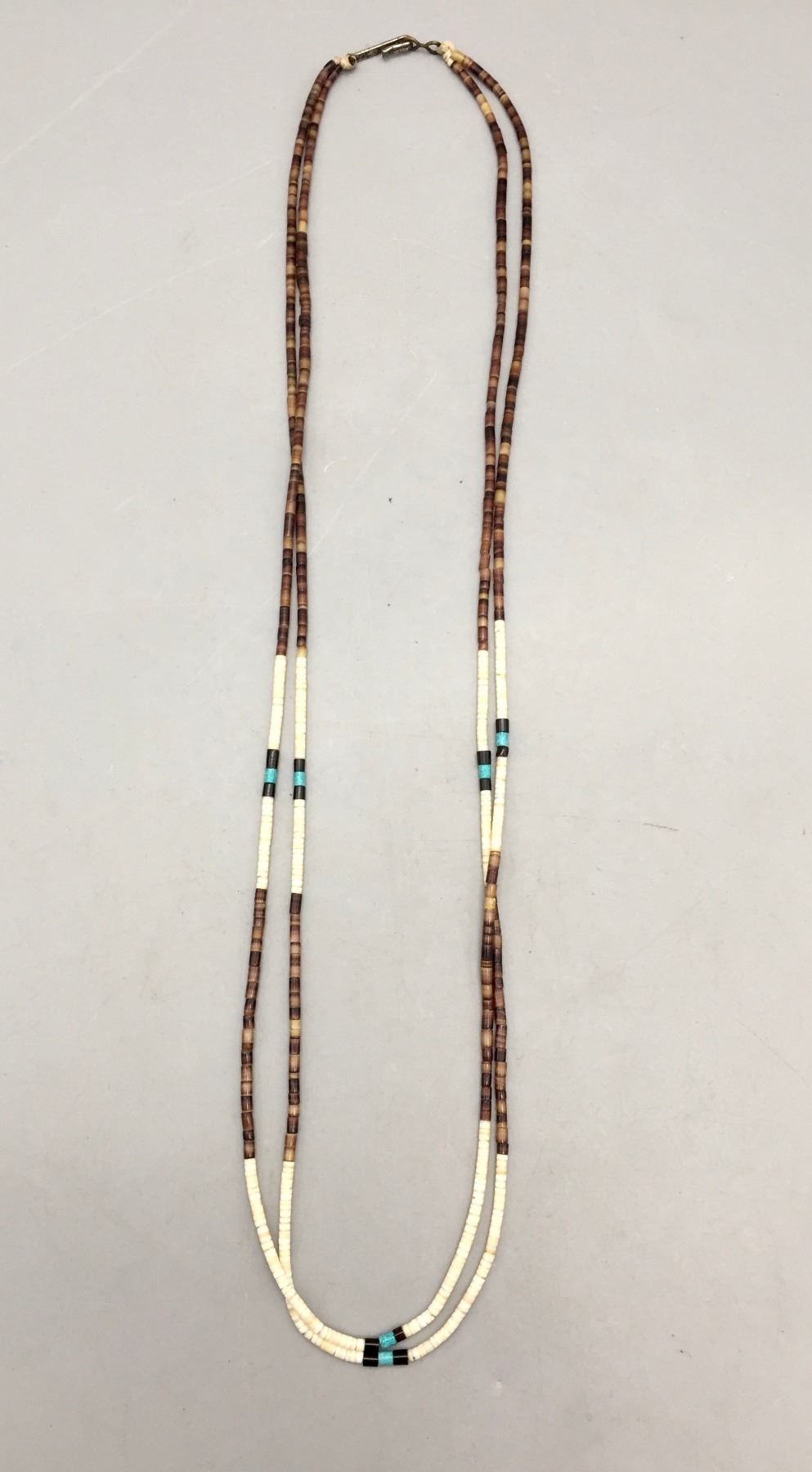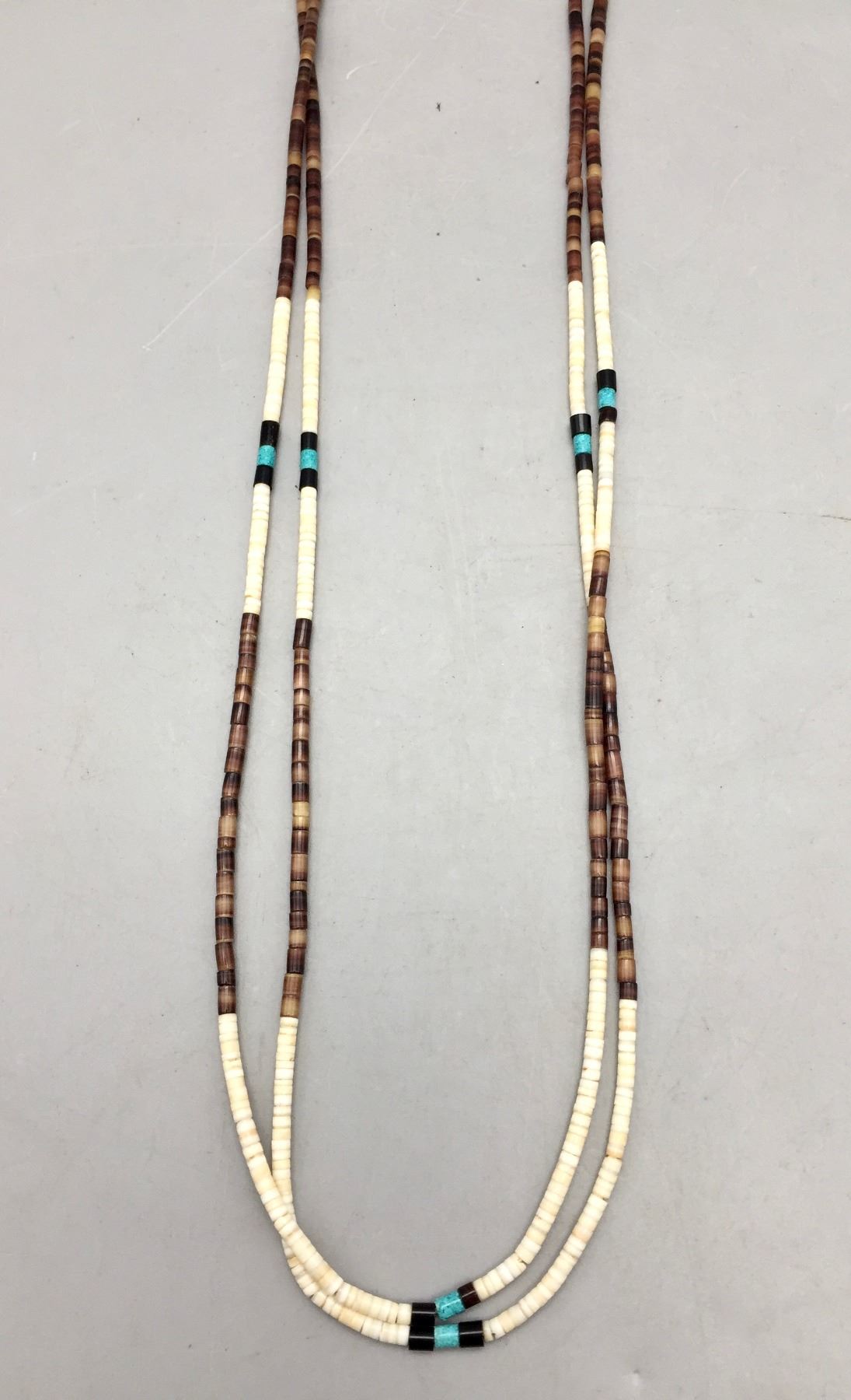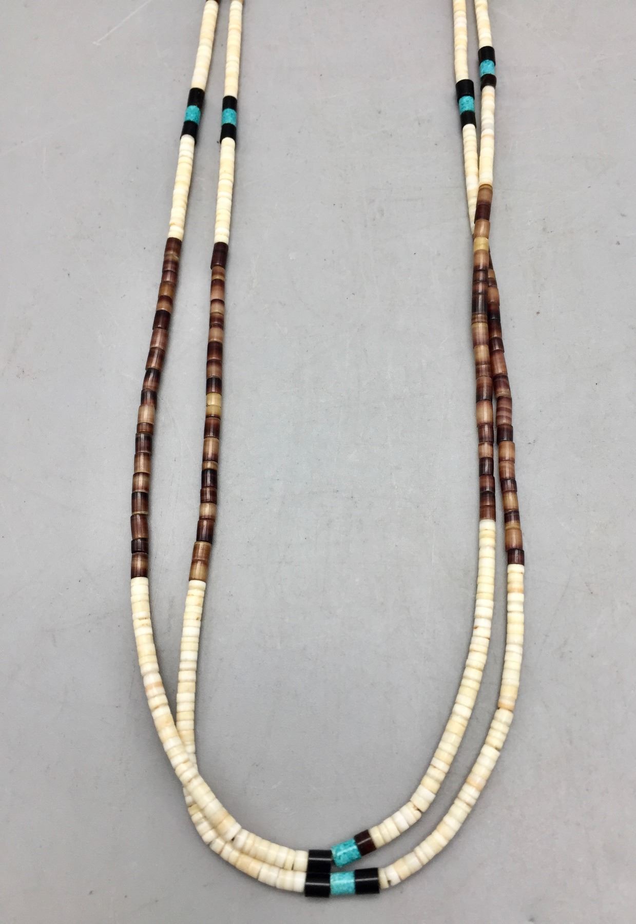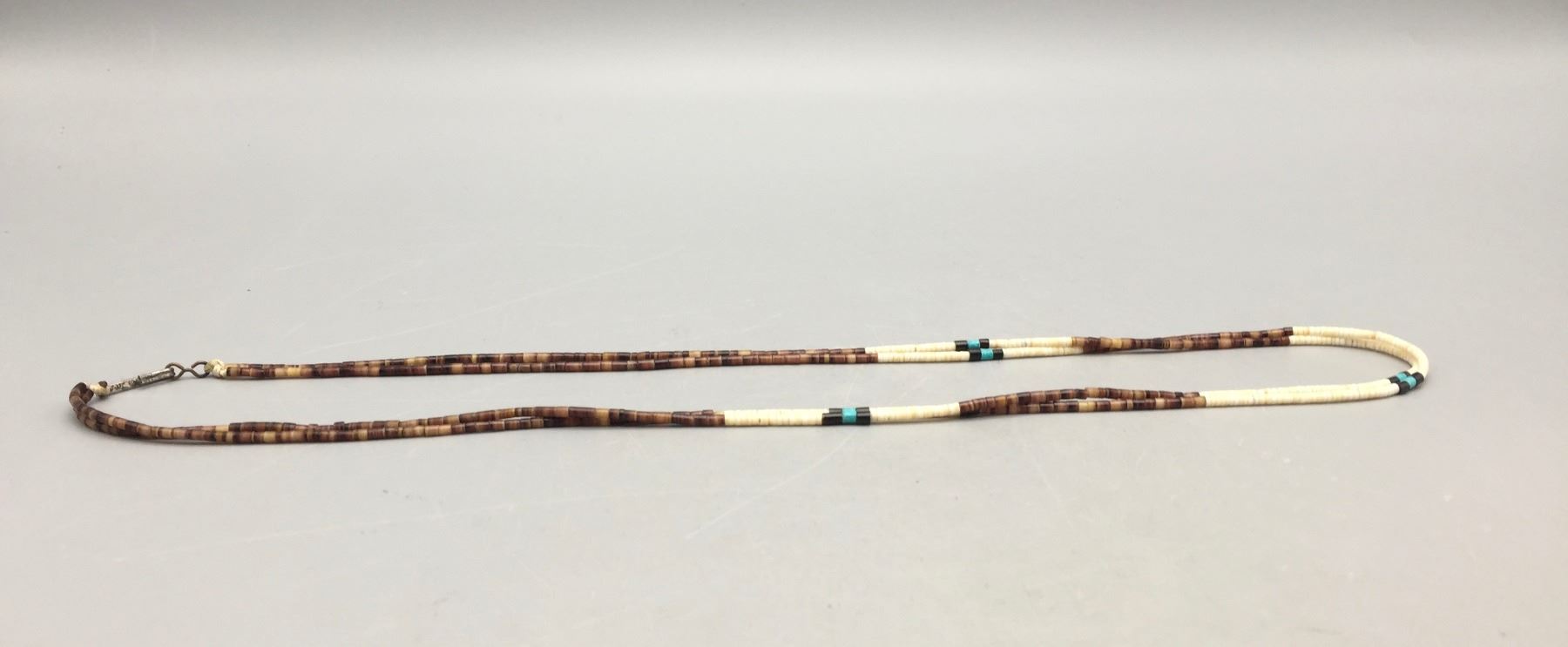 Description: For sale in this lot is a necklace featuring fine heishi, penn shell, black onyx and turquoise beads. Maker: No hallmark. Approx. Age: Vintage. Size: Fits a 24” neck. Weighs 11 grams. Condition: Good for its age, normal wear expected. Please look closely at the pictures - they are an important part of our description. Shipping: There will be a $5 handling / packaging fee for shipping this lot. The actual cost of postage will be added on top of that.