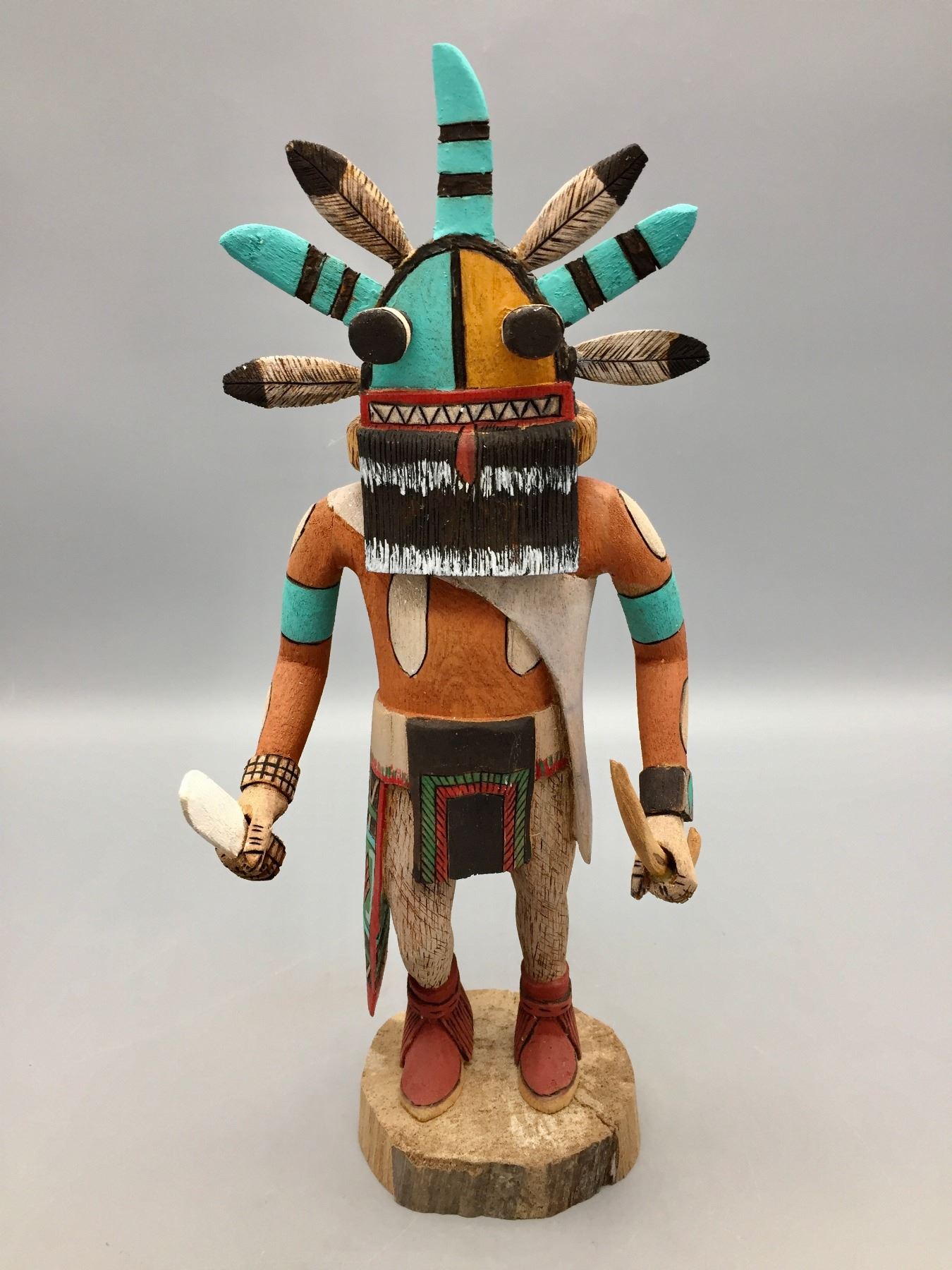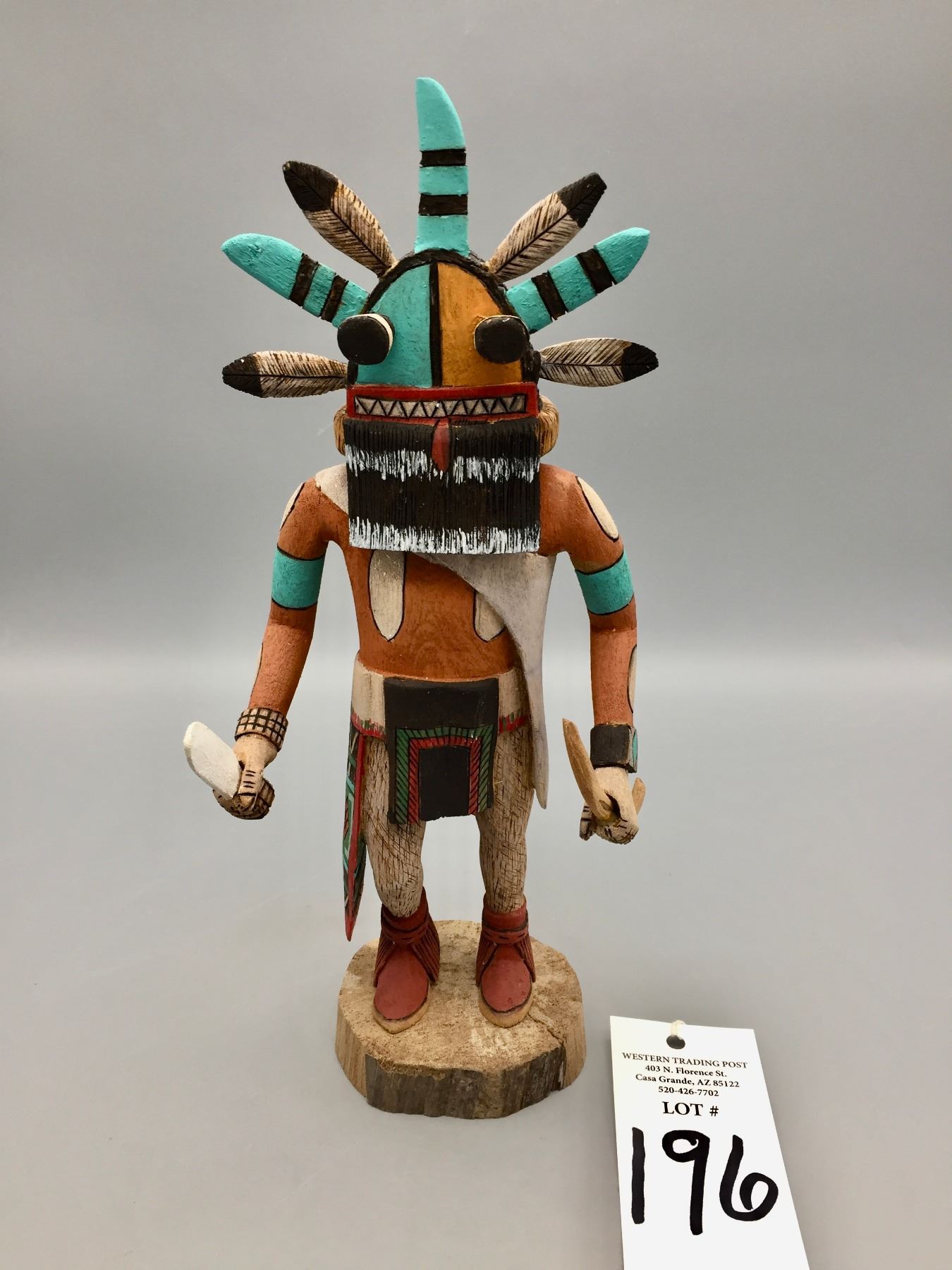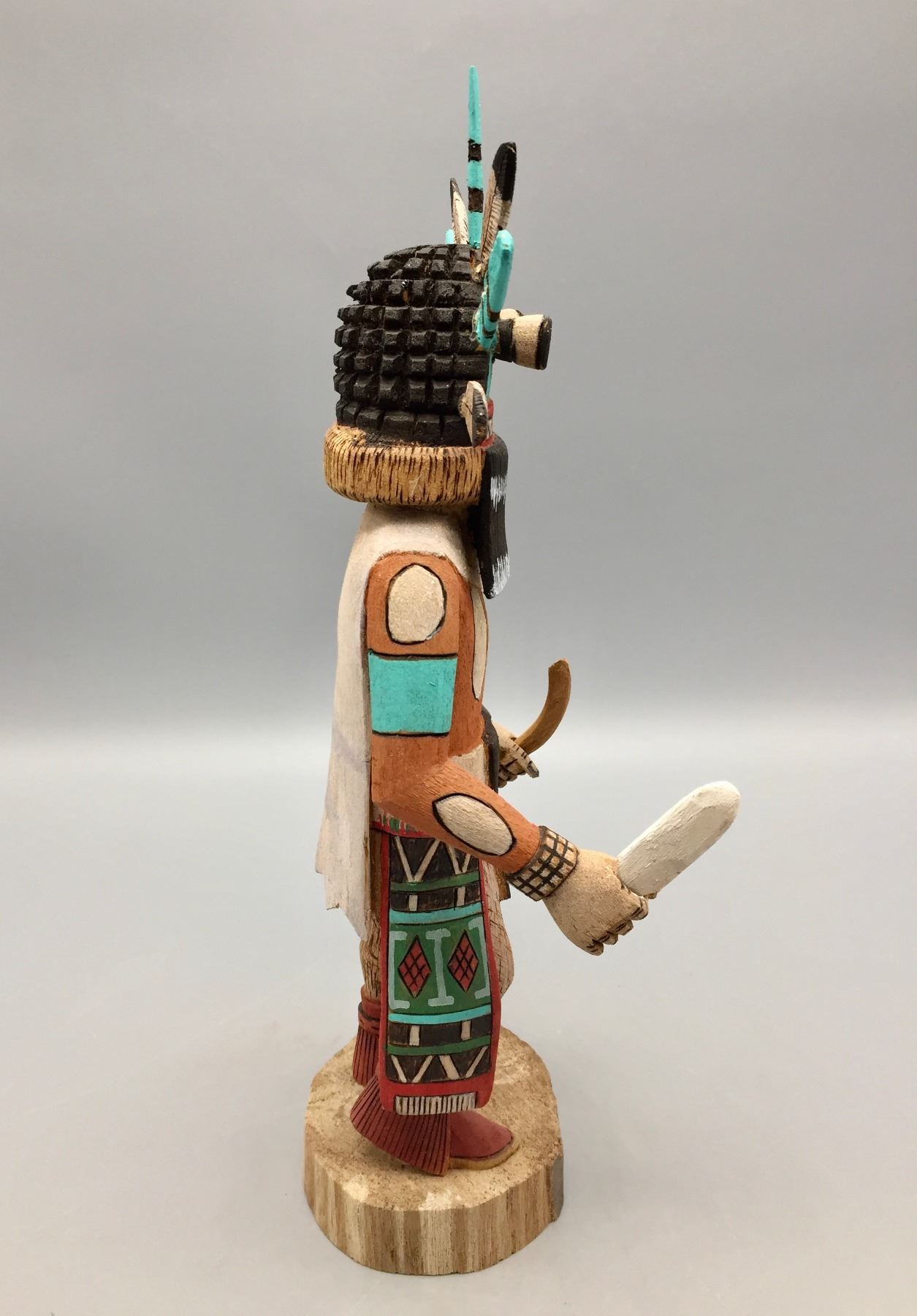 Description: For sale in this lot is a fine and highly detailed Hopi Kachina created by D. Adams.                                                                                                                    Maker: Signed, D. Adams, (Hopi).                                                                                                                  Approx. Age: Vintage.                                                                                                            Size: 5”w x 12” tall.                                                                                                                                                                                                                                  Condition: Good for its age, normal wear expected.                                                                                                                Please look closely at the pictures - they are an important part of our description.                                Shipping: There will be a $10 handling / packaging fee for shipping this lot. The actual cost of postage will be added on top of that.