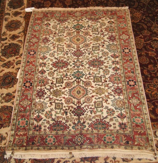 Hand Knotted in India, circa 2005-2010. NZ wool with all natural dyes. Excellent condition.