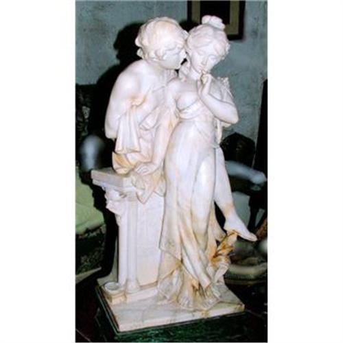 Fabulous finding ! probably the best work by this important Benezit Listed Artist " The Proposal" , it is amazing to watch the incredible expression achieved by Adolfo Cipriani (1895-1930), the Lady really seems to be thinking about the proposal, while the Young Gentleman, has just finished to talk, Cipriani captured in a piece of stone , the feeling of the exact second after the proposal ! ,this is the difference between an normal sculptor and a Great Master !! . and is probably the reason this artist reached $40K at Sotheby?s N.Y last April 25th, lot 69, with the 31,2inches H piece ,"A nymph with a butterfly" , a beautiful but single character piece ! This one is a sculpture group !!! similar good size of 29 inches H, and is in my opinion at least as good as the Nymph with butterfly ,if not still better . IT is under (professional) restoration, a feet and a finger were broken, and needed cleaning, as you see in pictures, this is not unusual for such piece after 100 years, and is not affecting the overall quality of this sculpture , Fabulous piece and very good investment too..
