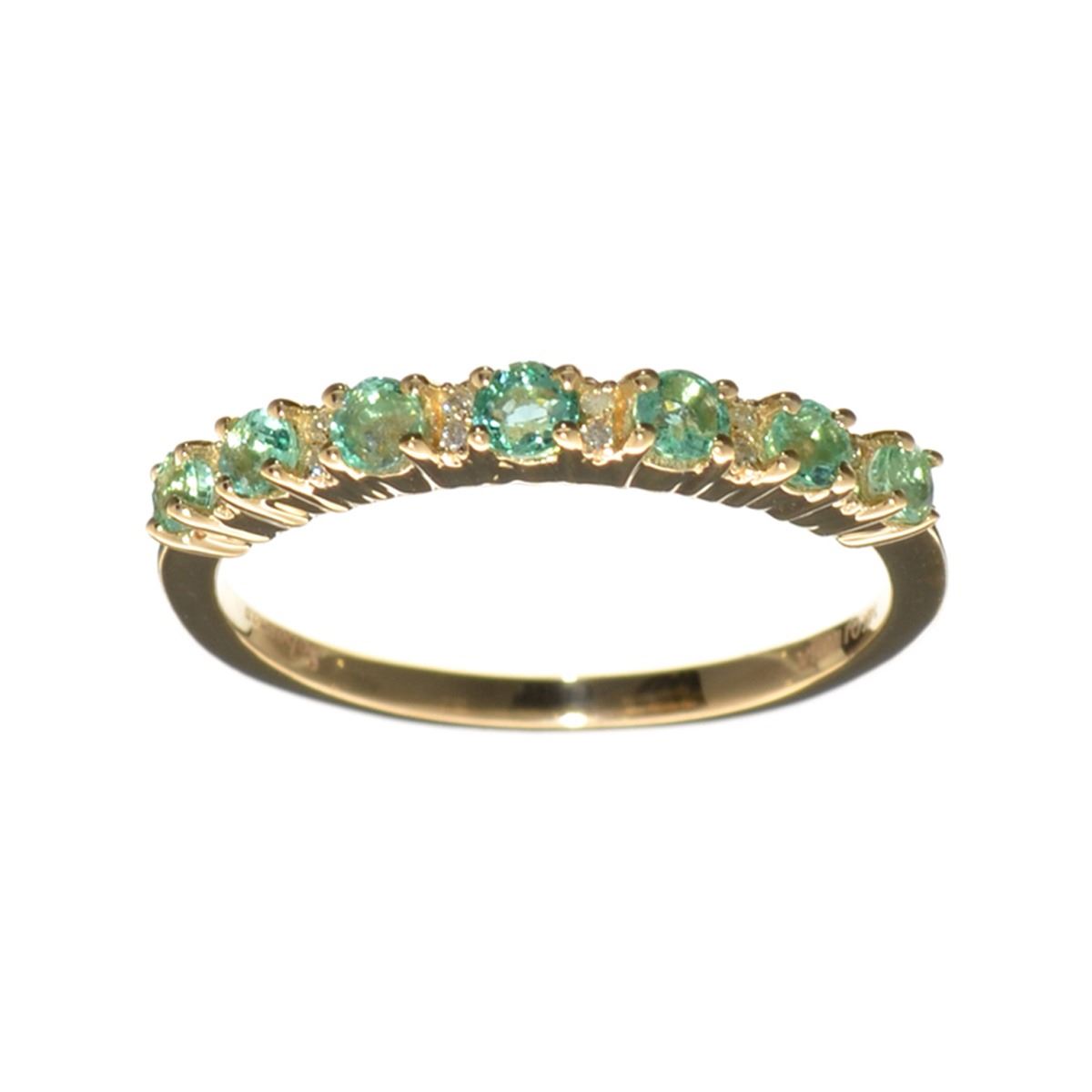 Fine Jewelry, Designer Sebastian 14 kt Gold, 0.59CT Emerald and 0.04CT Round Brilliant Cut Diamond Ring