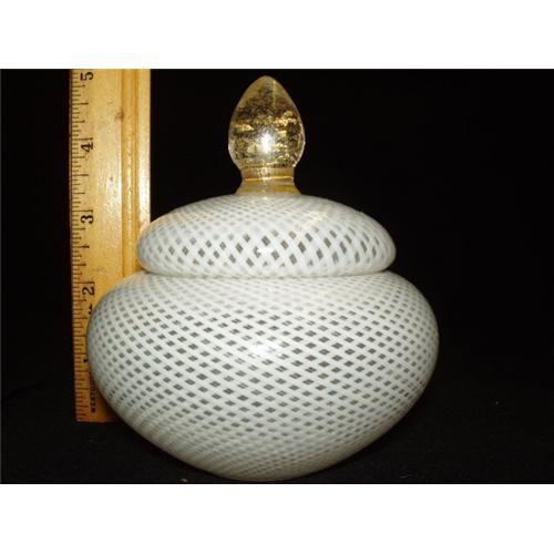 </font></strong>This Fine Lattice worked covered bowl is in great condition. It has a applied knob on top. This knob has gold applied and stretched. There are a few dark specks in the lattice work, which I would say is dirt. If you look inside, you can see 3 of the lattice pieces that have gray streak to them. They may have been dirty. With close inspection of the pattern you can see that the lattice work was applied to the bowl in two different layers. The first layer has a left twist and the out side layer has a right twist. The cover has a couple of indentations in it, that were in the making process. The top of the bowl and the bottom of the cover were both ground. They show wear from years of use. There are some microscopic chips that show up on the lid. There are no chips big enough the stick the point of a pin into. This is a truly exceptional piece.</font>