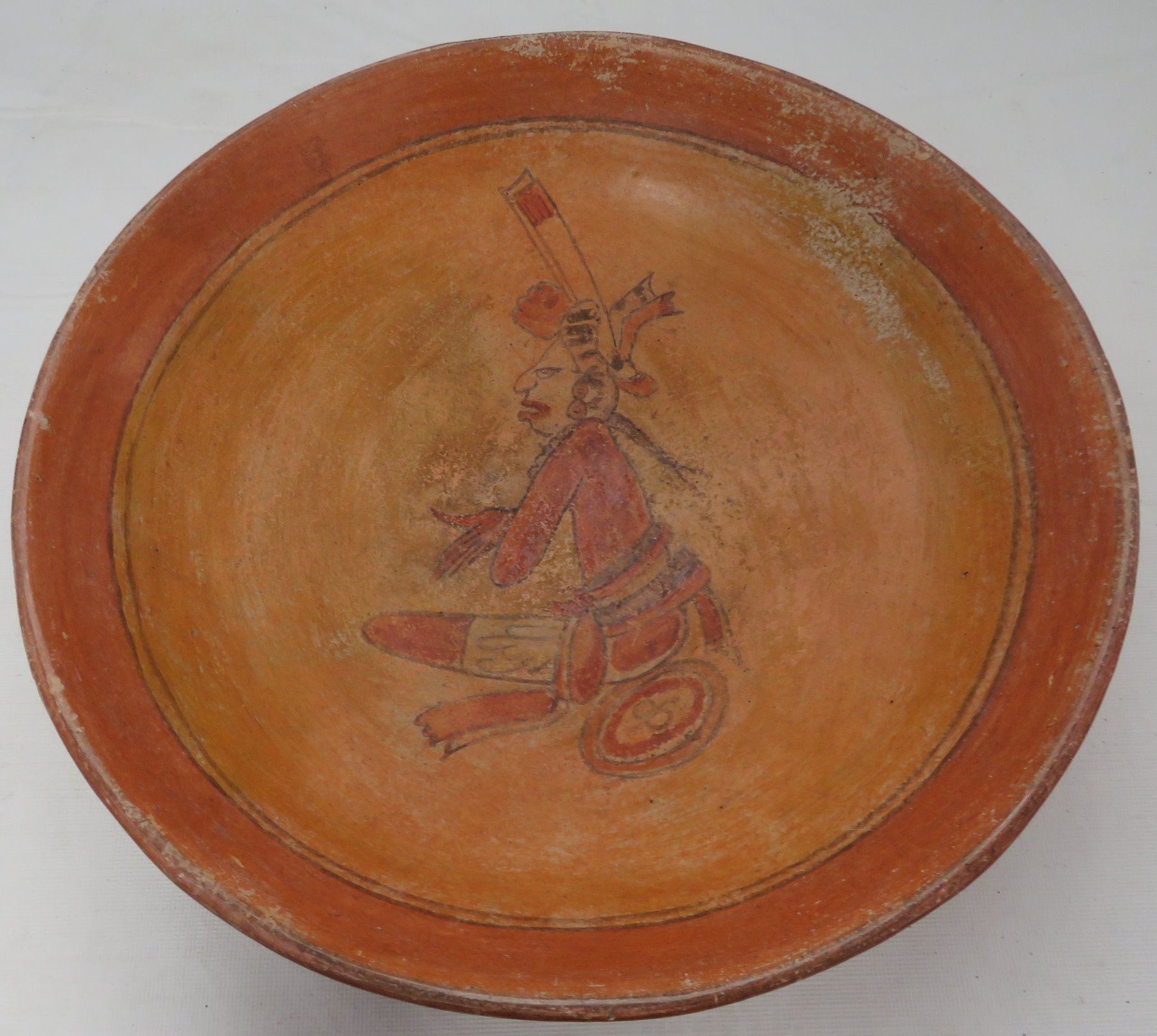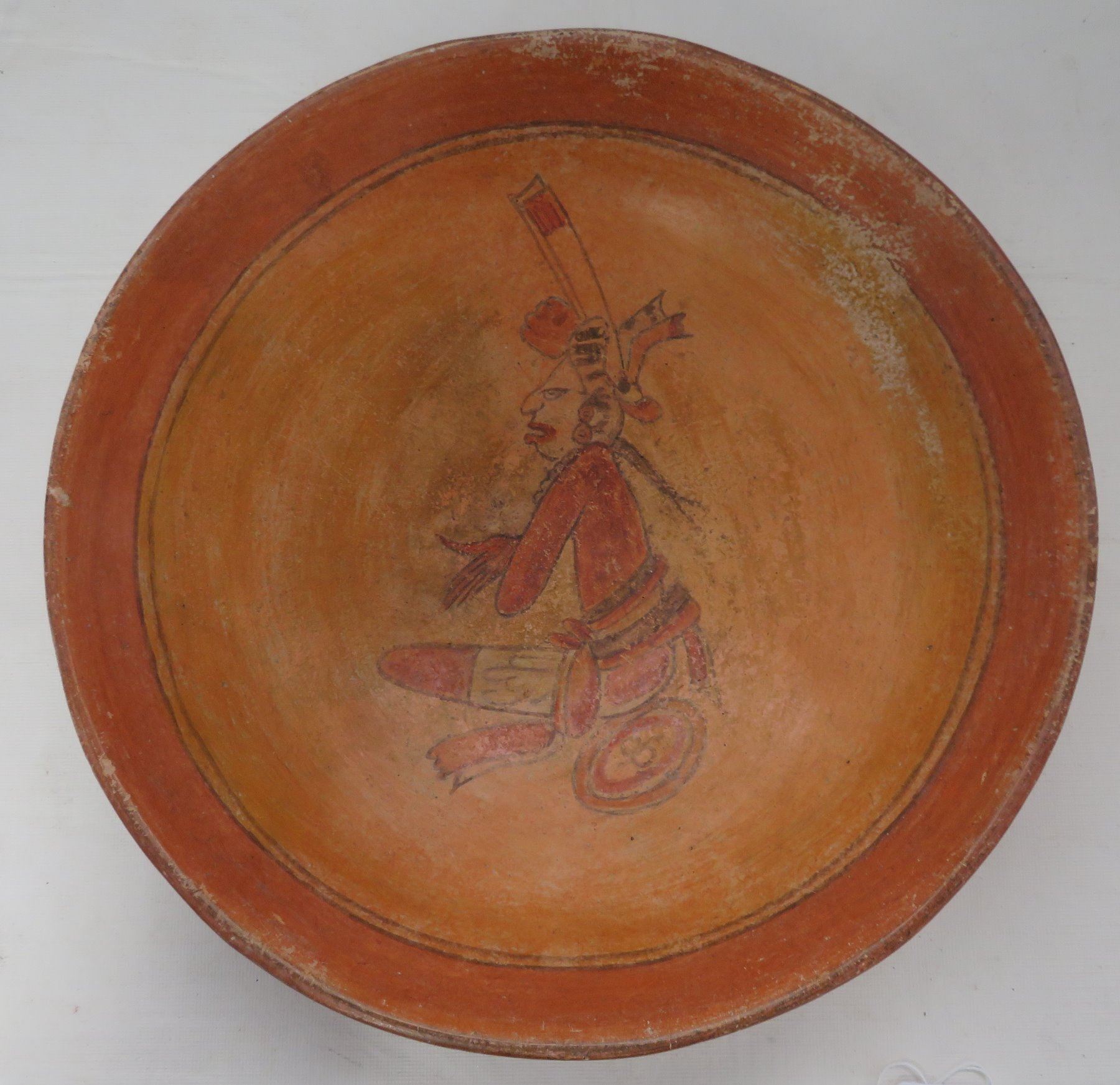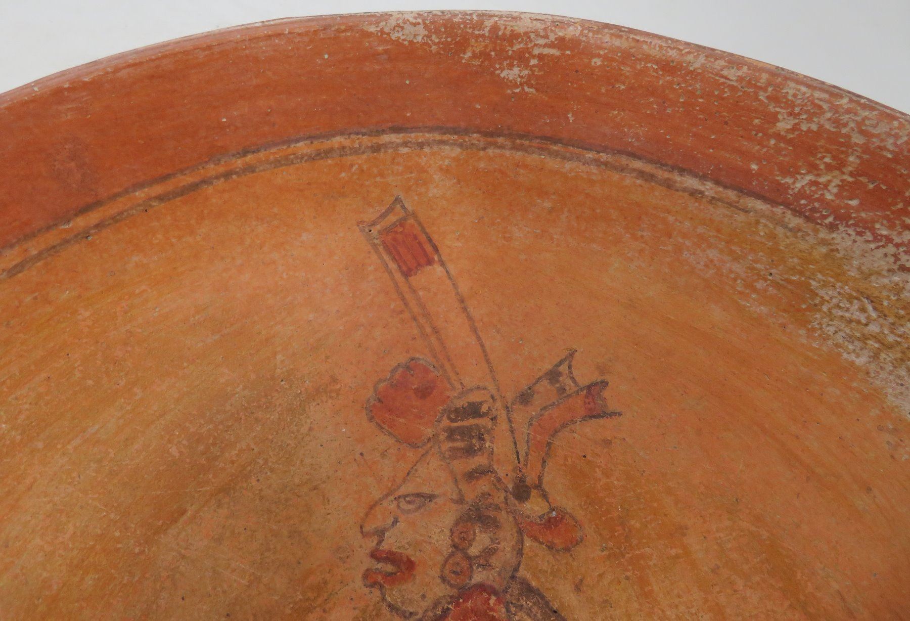 Fine Mayan Bowl, pre-Columbian item. Made of clay and paint, this fine item measures 12" x 3". Guatemala. Condition: Minor nicks and wear, see images. Shipping: $65.00 w/insurance and signature, double-boxed, due to value and weight.