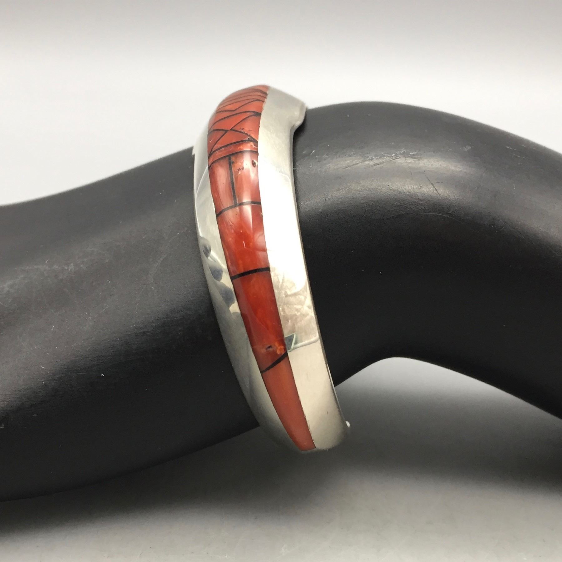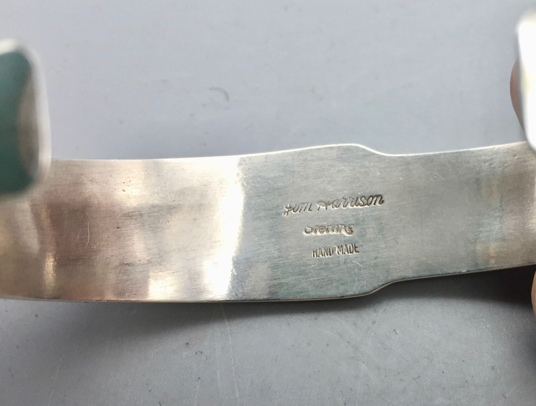 Description: Presented for sale in this lot is a gorgeous, fine, Navajo inlay bracelet, set in sterling silver. Maker: Hallmarked Jimmy Harrison, Navajo. Approx. Age: Fairly modern. Size: Fits a 6-1/4” wrist. Weighs 38.9 grams. Condition: Good for its age, normal wear expected. Please look closely at the pictures - they are an important part of our description. Shipping: There will be a $5 handling / packaging fee for shipping this lot. The actual cost of postage will be added on top of that.