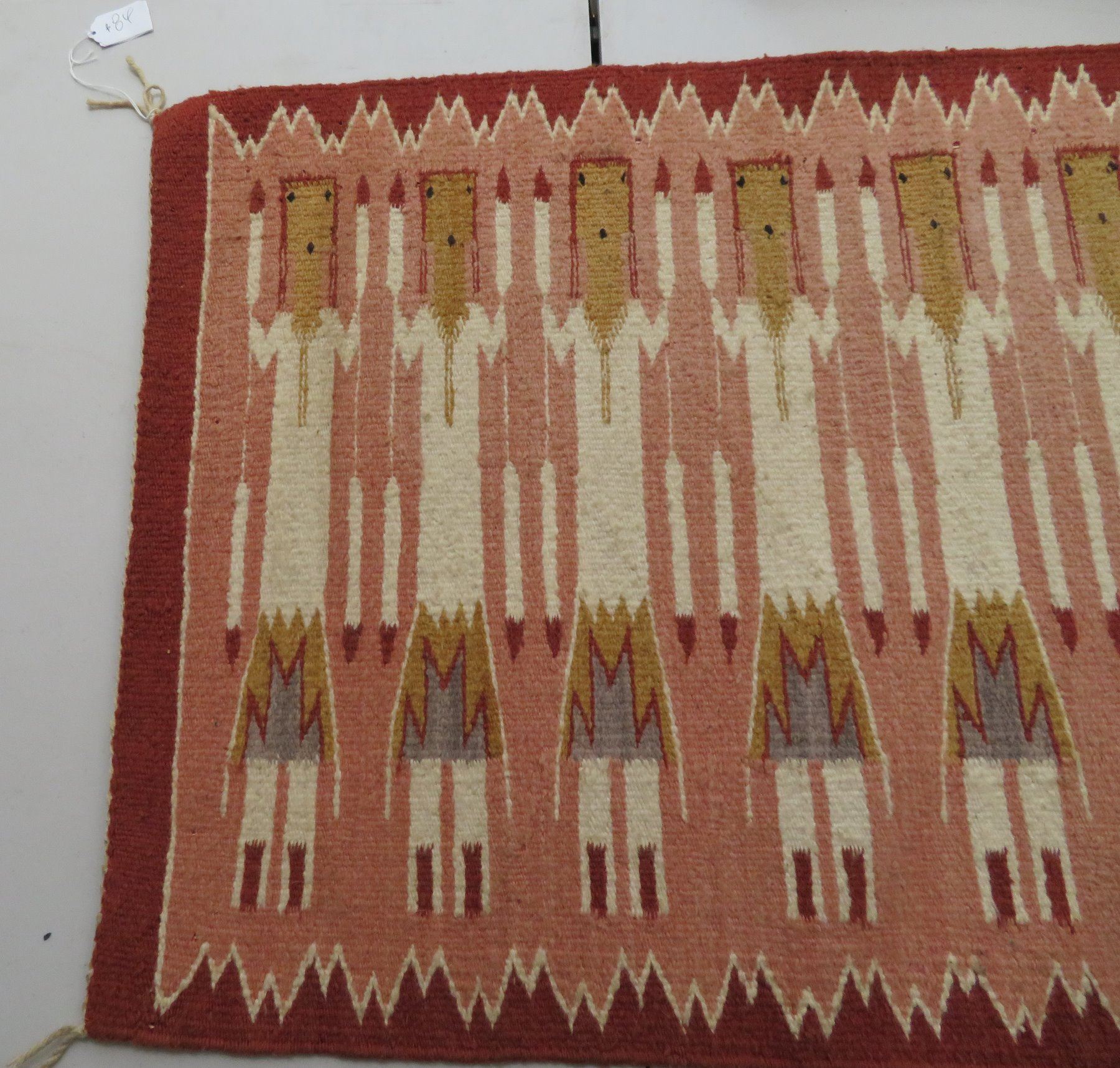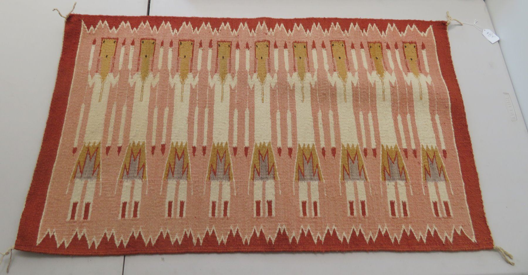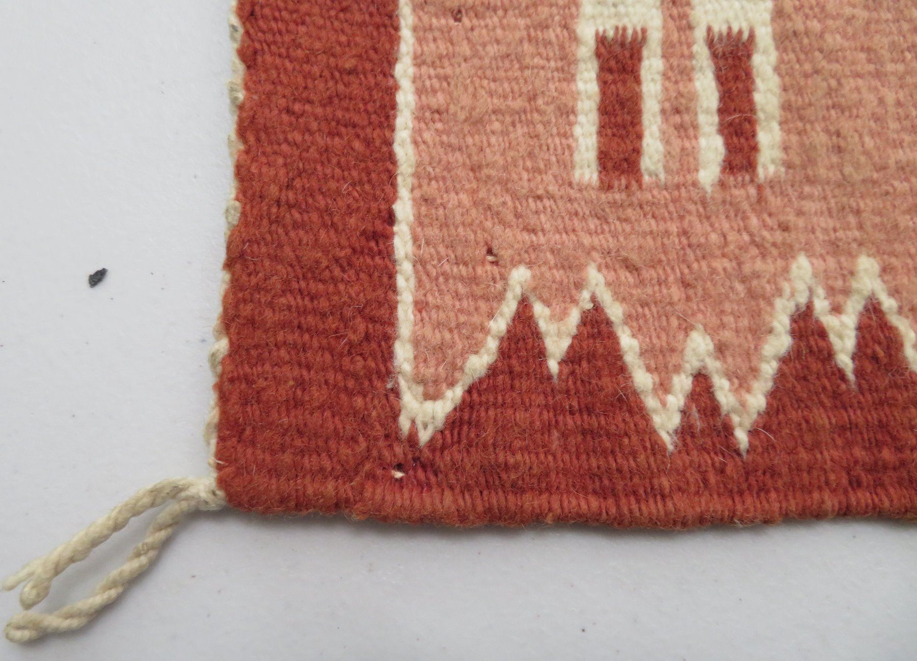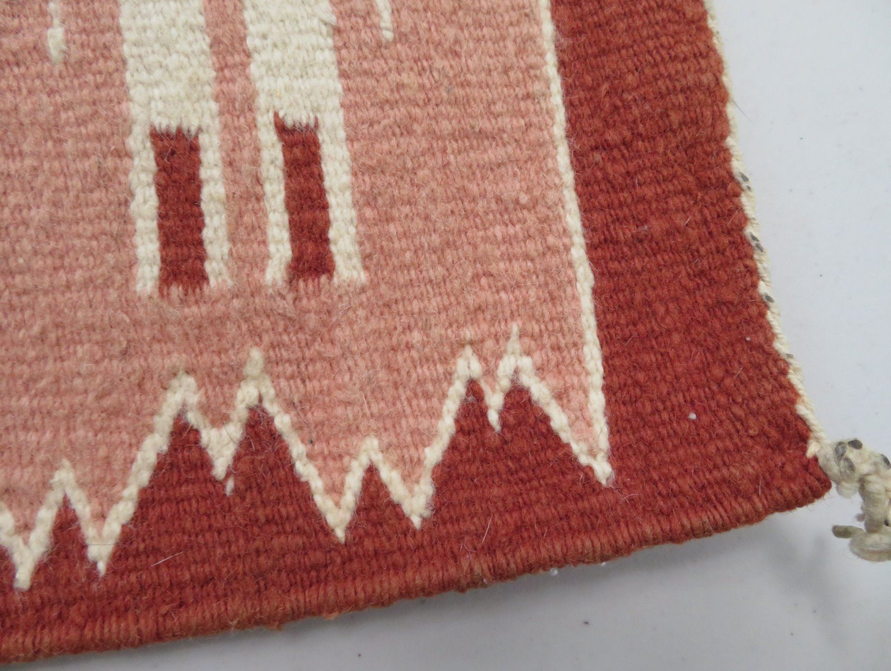 Fine Navajo Rug, c. 1940s. Made of wool, the item measures 38" x 23". New Mexico. Condition: Good, see images. Shipping: $26.50 w/insurance and signature.