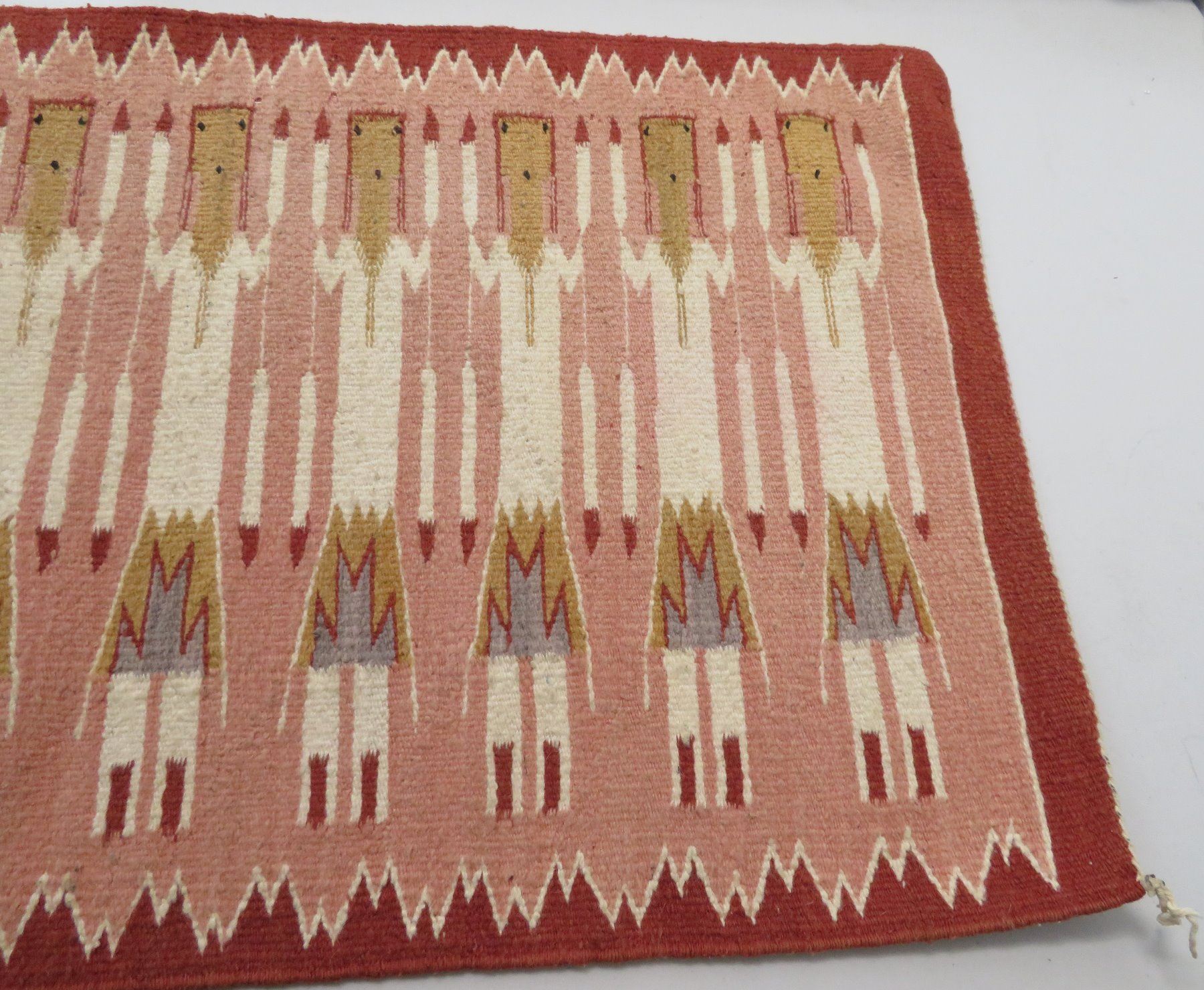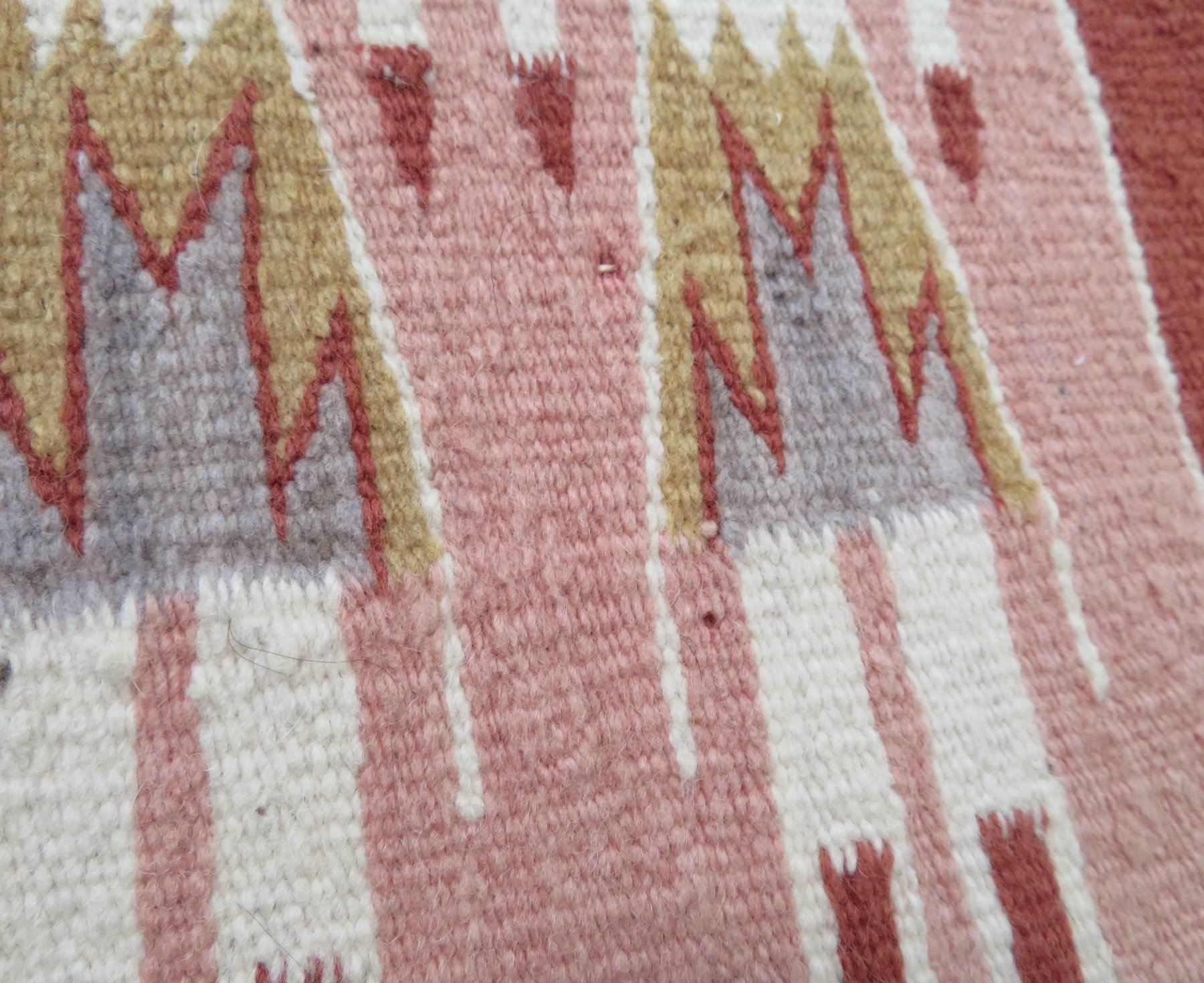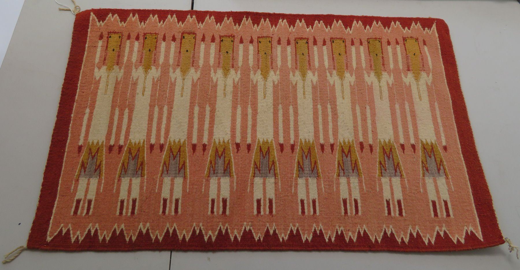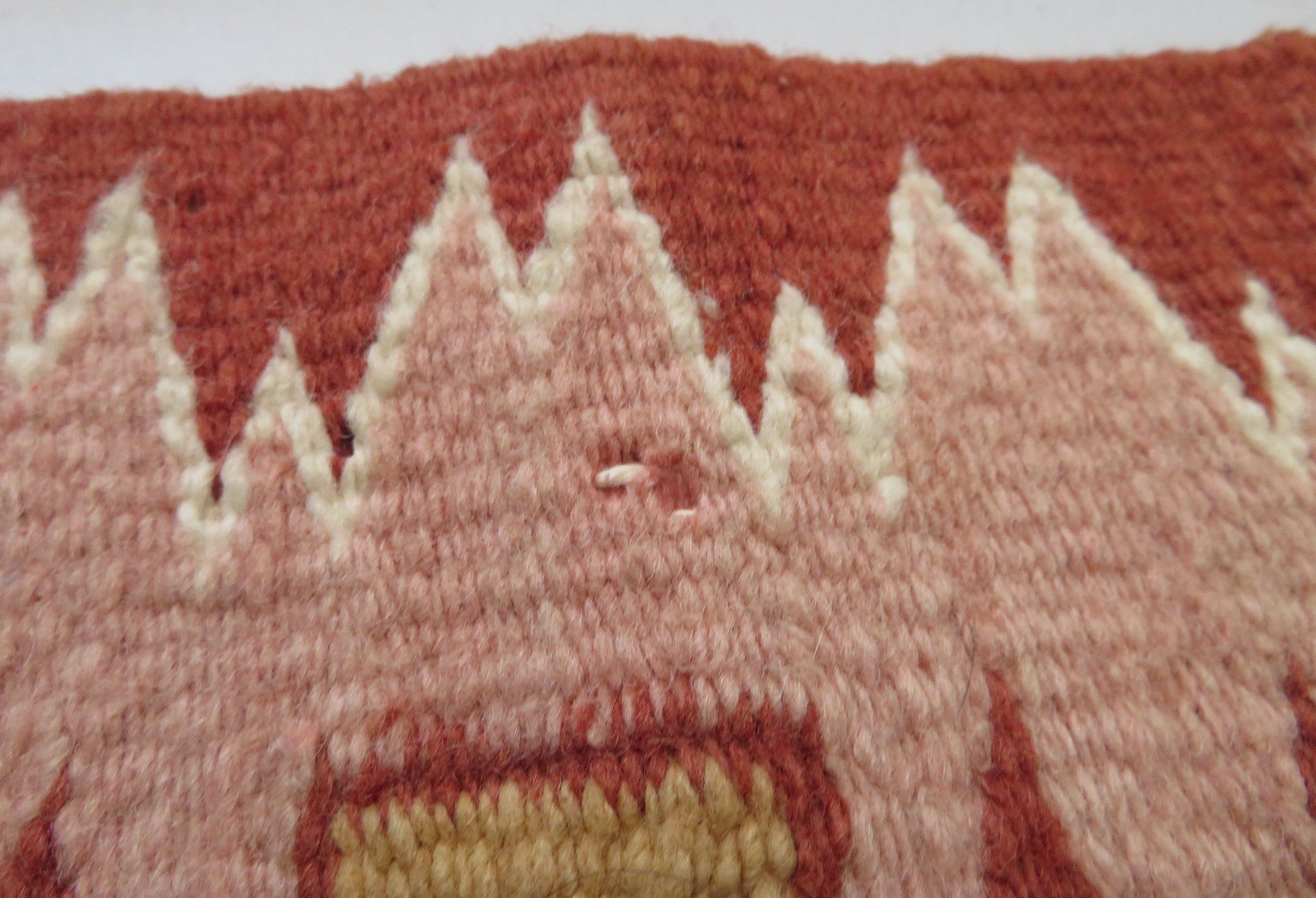 Fine Navajo Rug, c. 1940s. Made of wool, the item measures 38" x 23". New Mexico. Condition: Good, see images. Shipping: $26.50 w/insurance and signature.