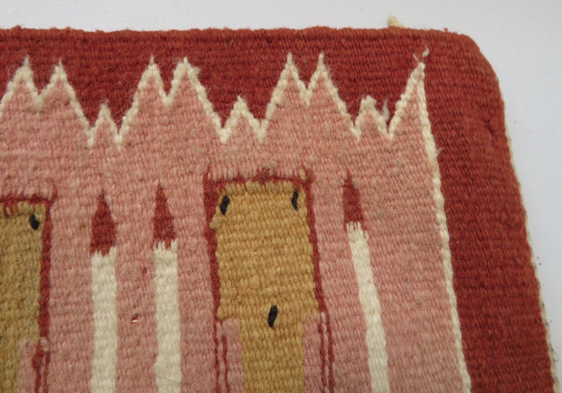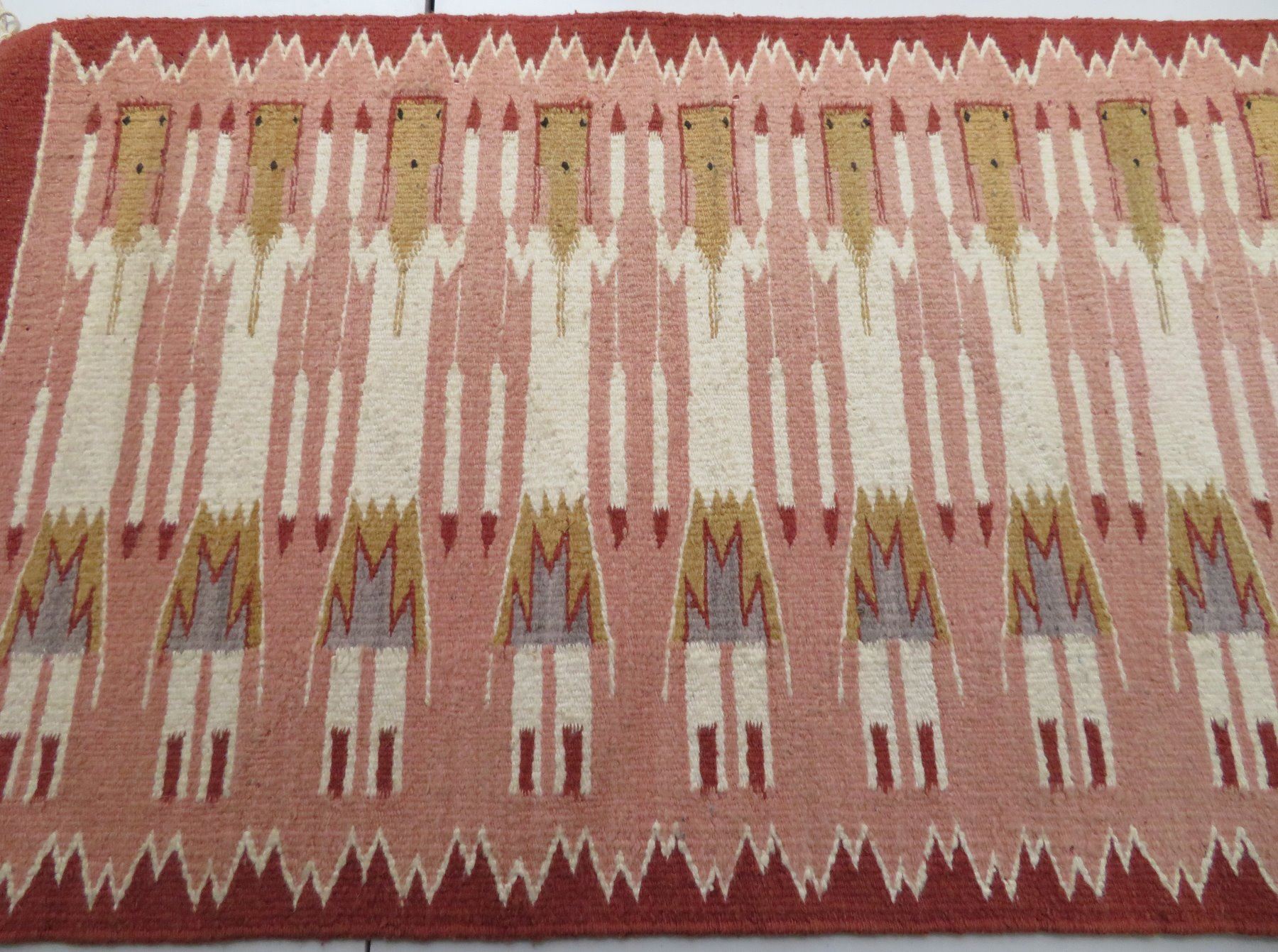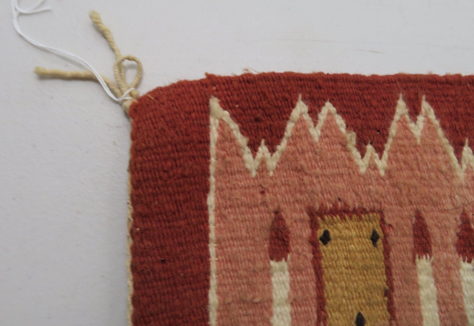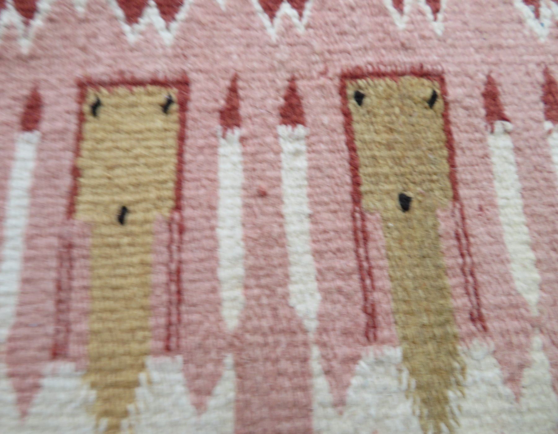 Fine Navajo Rug, c. 1940s. Made of wool, the item measures 38" x 23". New Mexico. Condition: Good, see images. Shipping: $26.50 w/insurance and signature.