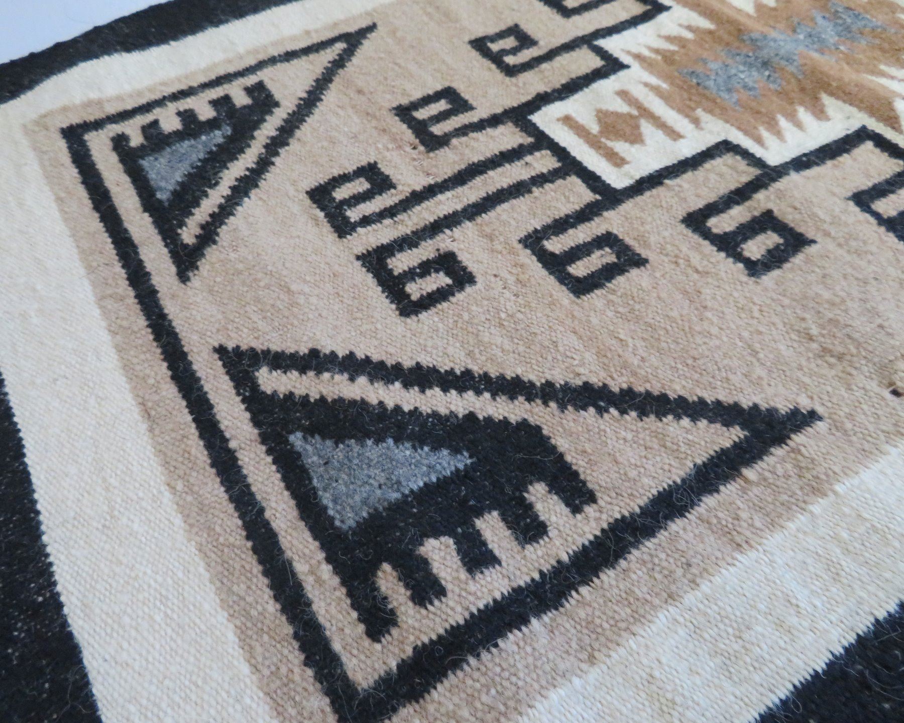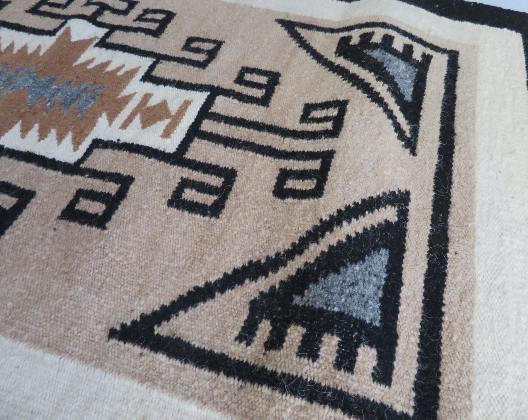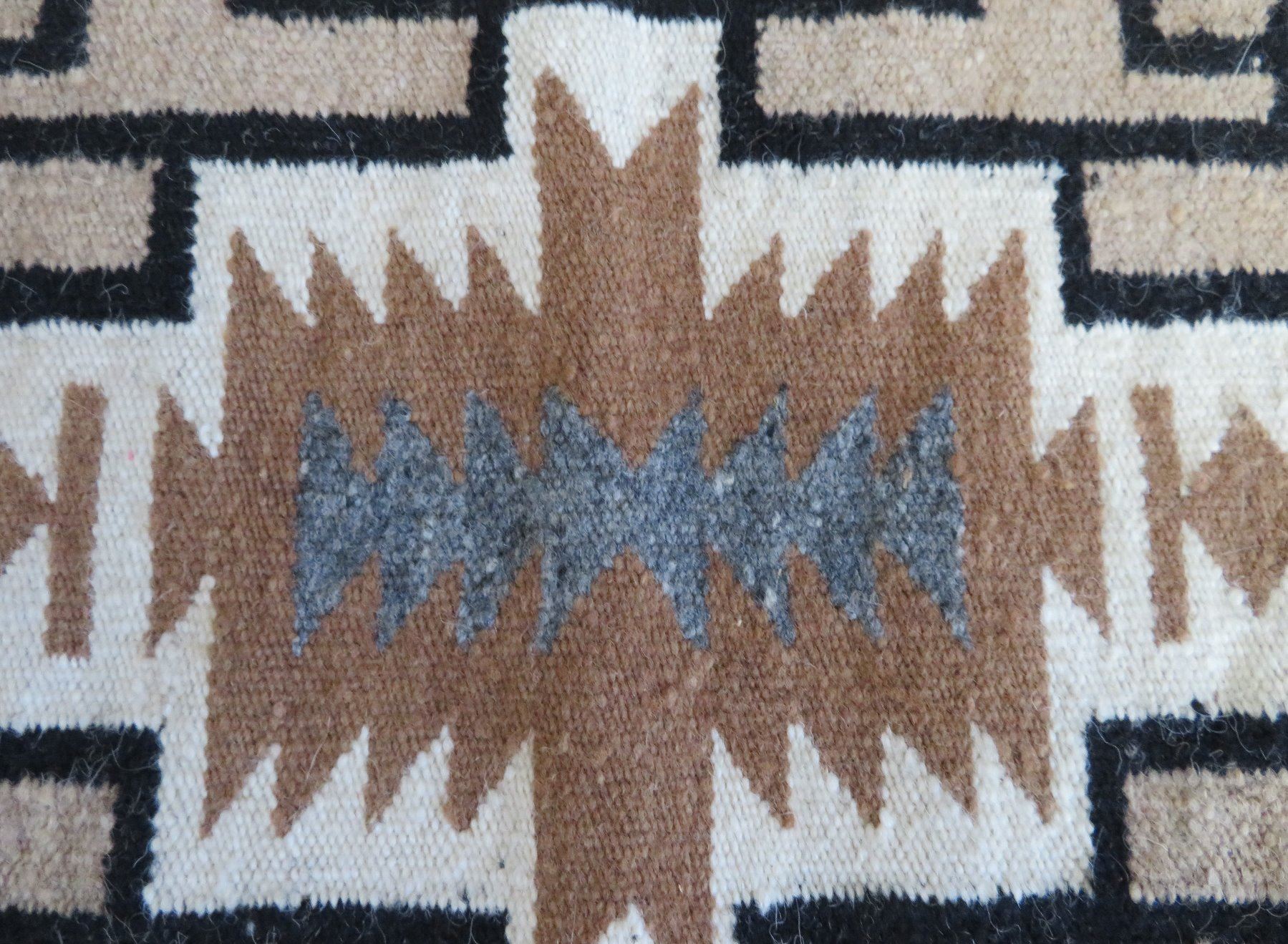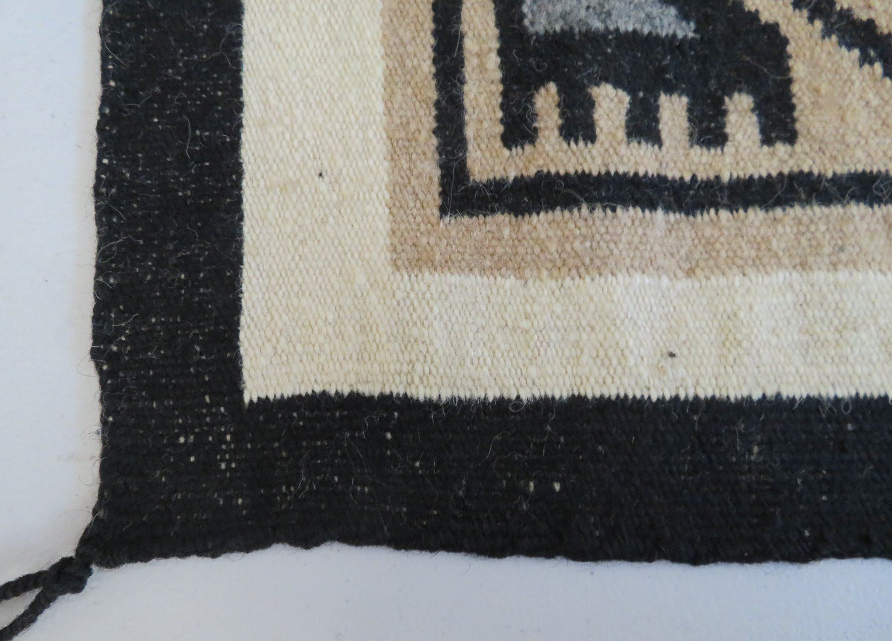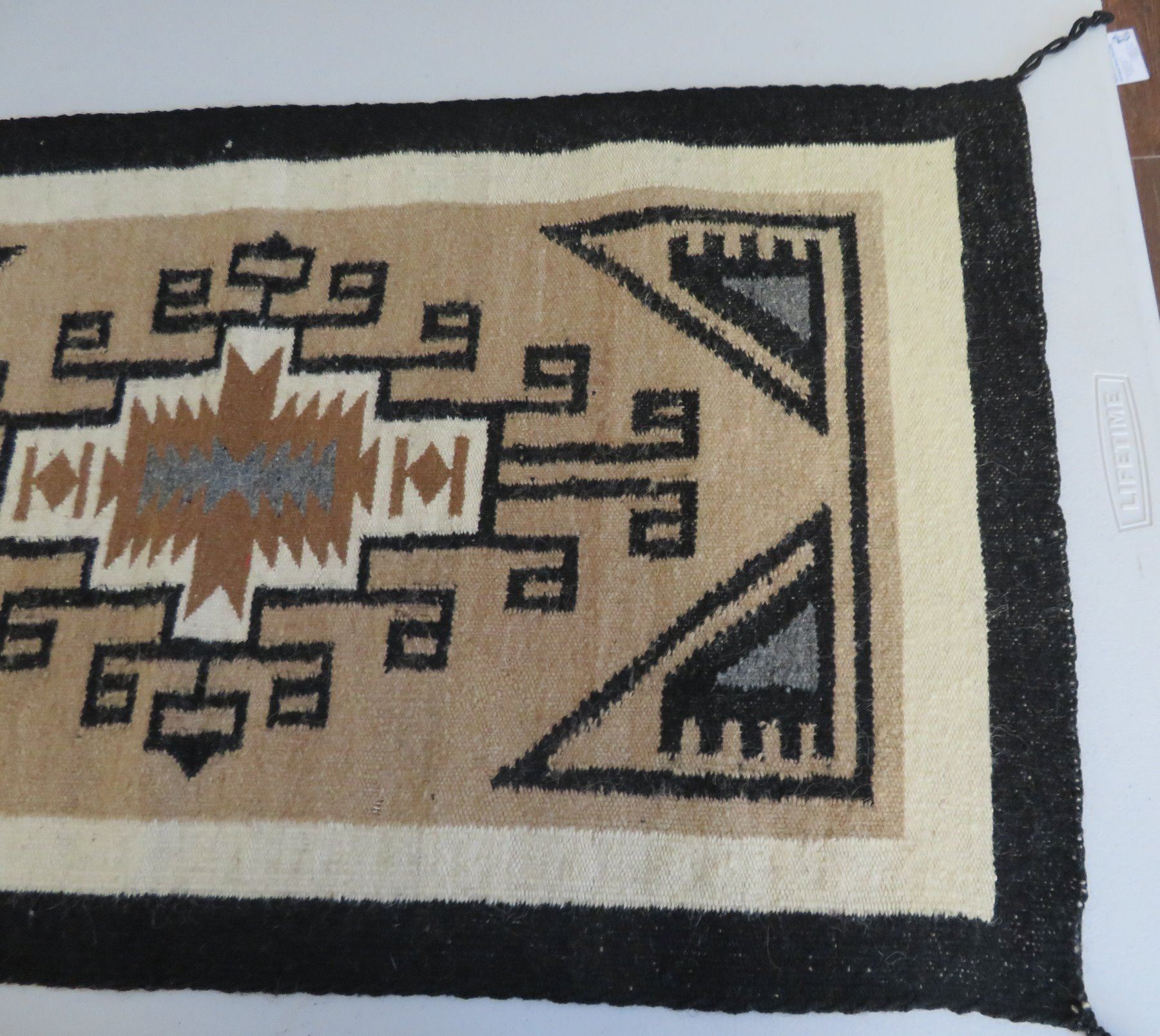 Fine Navajo Rug, c. 1940s. Made of wool, the item measures 32" x 18". New Mexico. Condition: Minor moth damage, see images. Shipping: $24.50 w/insurance and signature.