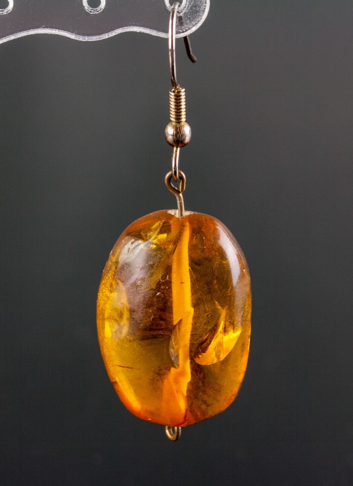 Fine amber earrings; of ovoid shape; of translucent orange tone; 3 cm x 2 cm, 9 grams