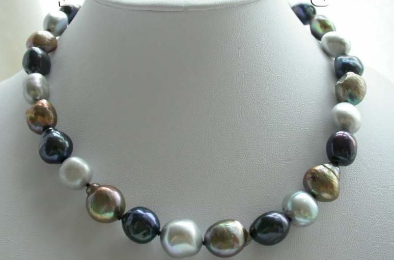 Gorgeous 12 mm Multicolor Natural Pearl Necklace~ measures approx 18 inches~ beautiful floral clasp