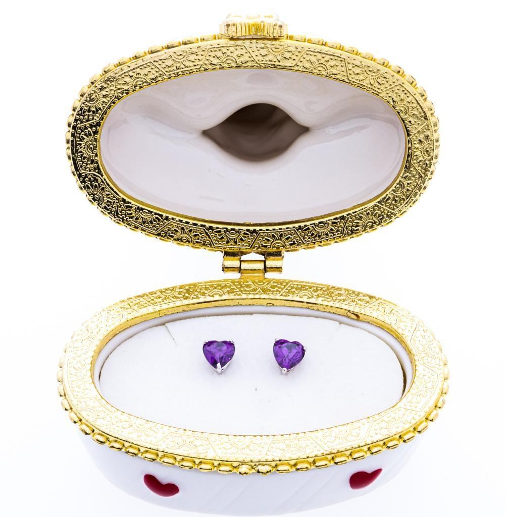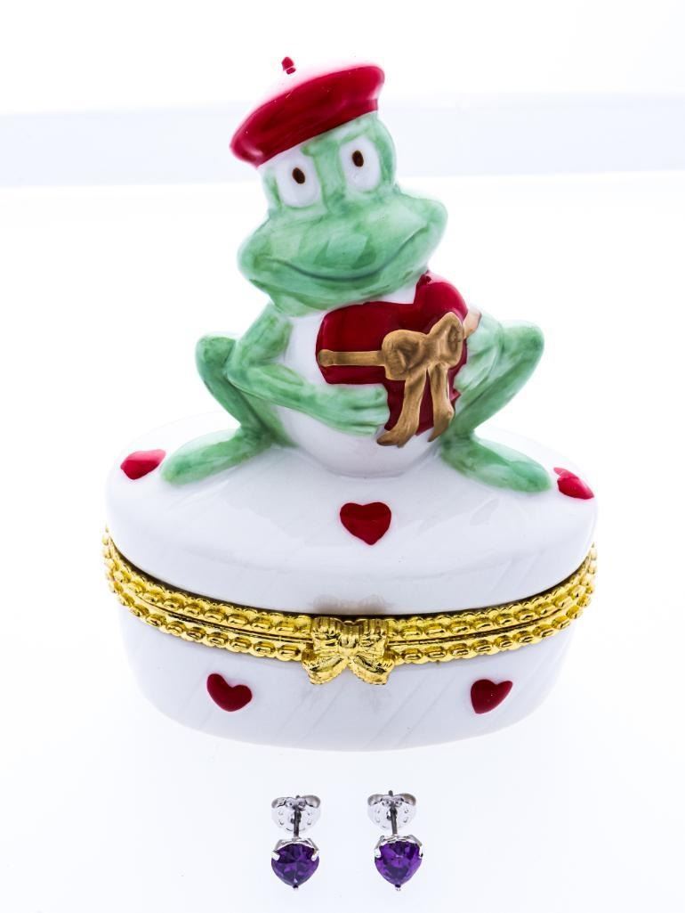 Fine Porcelain Frog w/ Heart Jewelery Box- Plus Pair of Stud Earrings
