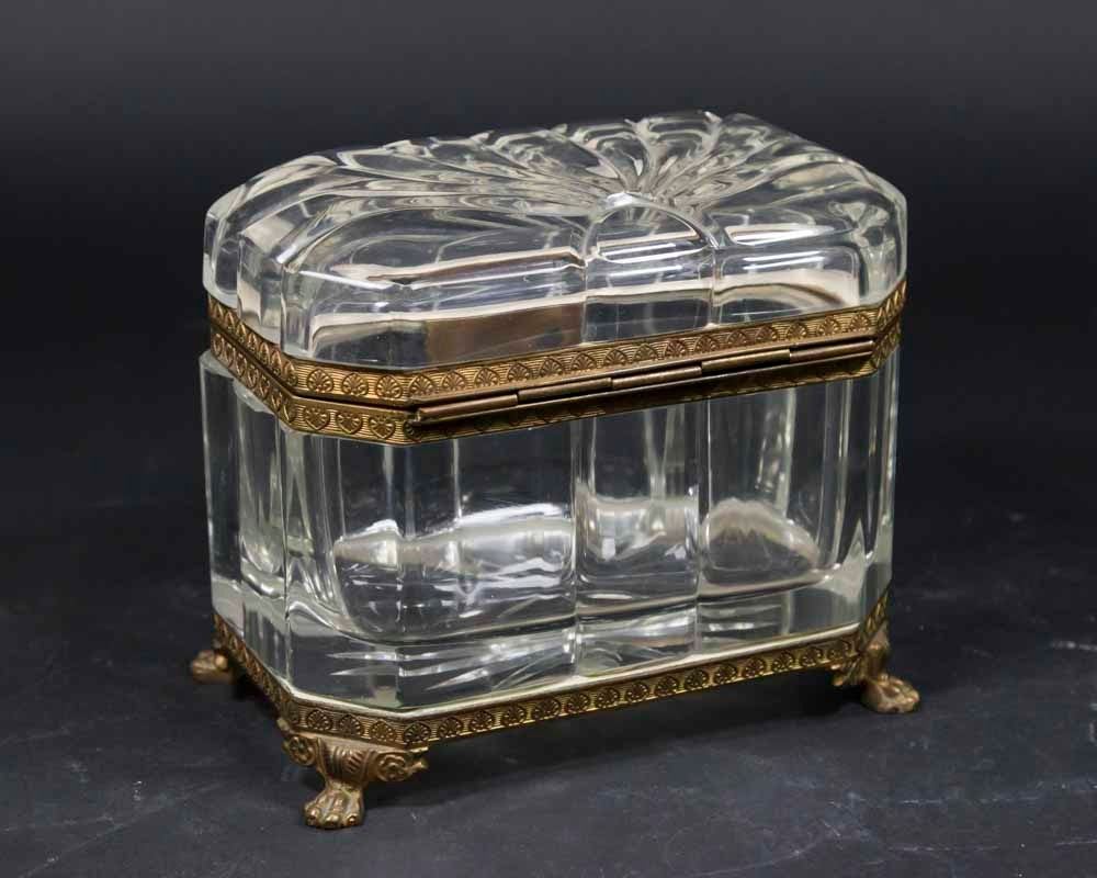 French gilt metal mounted. Approx. 5 3/4" H x 7" W. Hinge needs replacing.