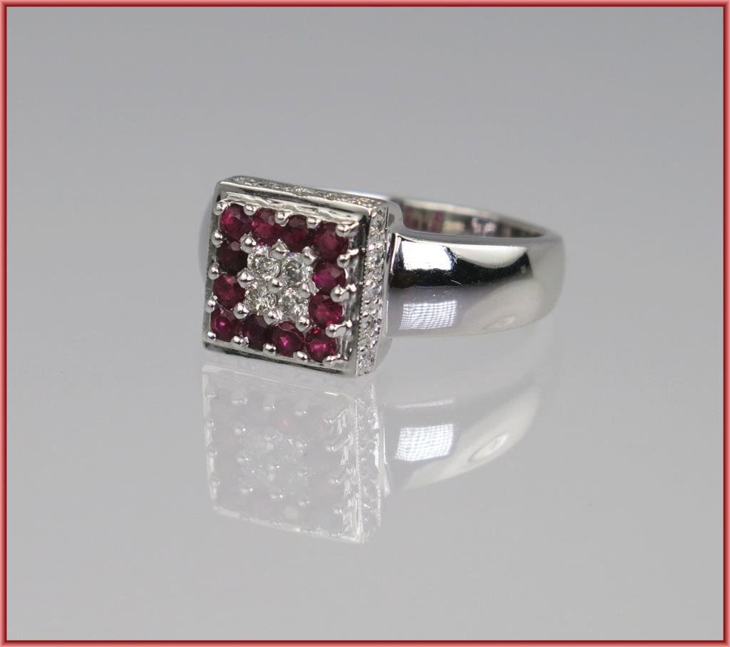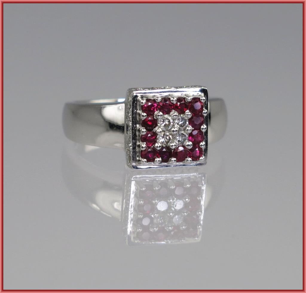Fine Quality Ruby and Diamond Ring with 12 round cut pave set rubies and 24 round cut Diamonds weighing approx. 0.40 carats combined total with G-H color and VS/SI Diamonds set in 5.20 grams of 18 karat white gold. Retail $1,400-$1,600 Estimate $700-$900