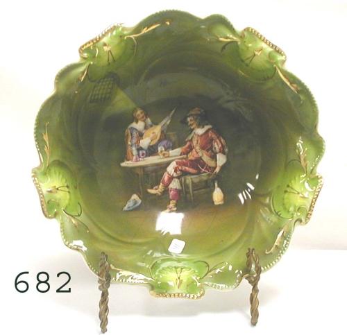 Fine Royal Bayreuth deep bowl with Cavaliers signed A. Dixon – deep green with gold highlights
