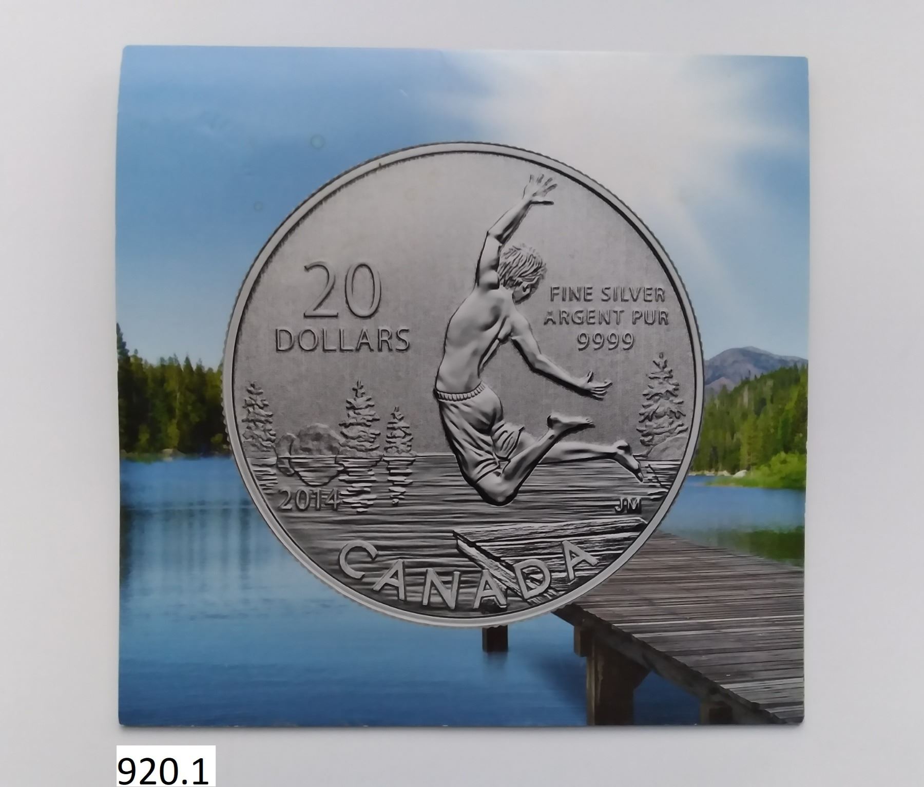 Fine Silver 1914 $20 Face Value Coin. Limited Edition, issued by the Gov't of Canada Royal Canadian Mint. 99.99 % pure silver.