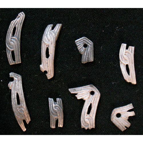 Fine Silver Band/buckle in 8 pieces. Detailed pieces that show fine craftsmanship and most likely was in one piece at a certain point in time before the shipwreck. (Aug 00789, 00782, 00821, 00823, 00804, 00784, 00822 and 00781). Should be viewed<BR><BR>Notice. For all winners of lots pertaining to the Auguste Shipwreck, please be advised that due to Canadian Laws in reference to the Exportation of Archeological and Shipwreck finds, a request for permission to export these items must to be filled and sent into Canadian Customs for approval for every lot won and shipped outside Canada. In most cases this will cause a delay of 10 to 20 business days for all shipment of lots once payment received. We have been in discussion with Canada Customs and anticipate no problems. We ask for your patience and will do our best to keep each buyer updated on their lots. Please contact us for further information if necessary.