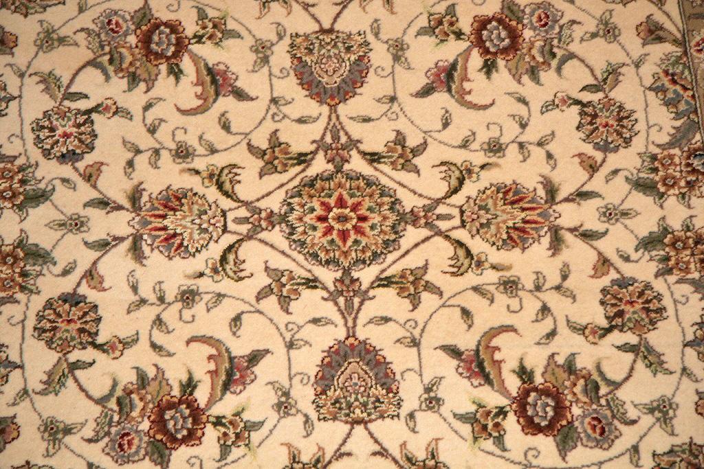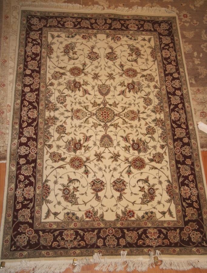 Hand Knotted in China, circa 2005-2010. Fine 100% wool with silk accents. Excellent condition.