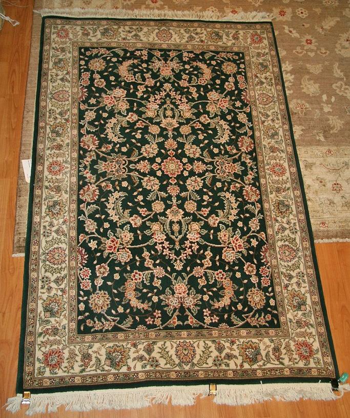 Fine Sino Wool and SilkGreen/Ivory 4 x 6