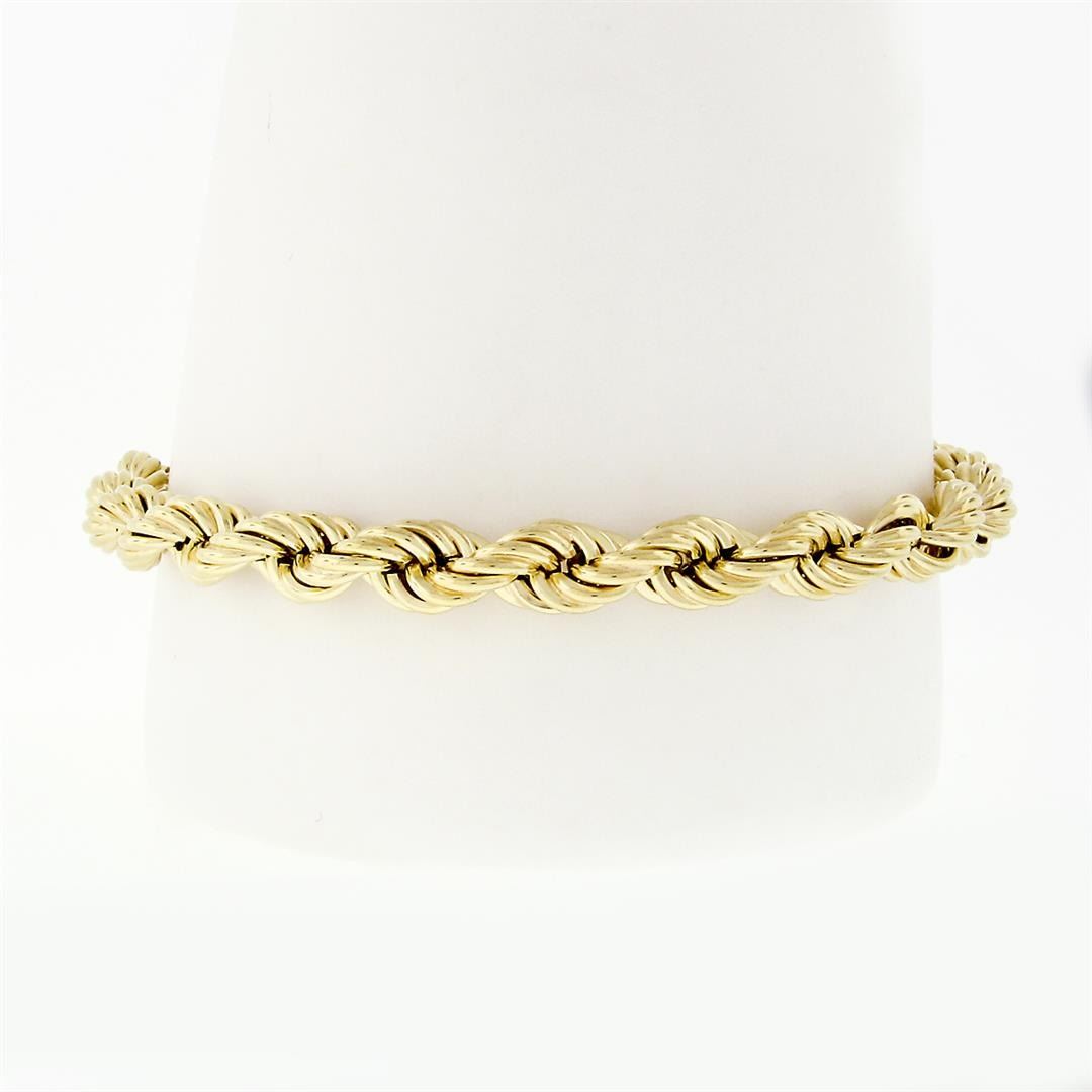 A solid 18k yellow gold chain bracelet. It weighs a total of 11.90 grams, measures 6.44mm wide, and measures 8 inches in length.