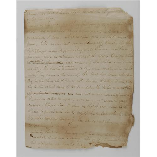 <B>Fine War of 1812 Correspondence Collection.</B></I> Captain Benjamin Watson's 38 letters, primarily war-dated, and many with descriptive battle content. Also, there are 17 documents of a court martial. Watson was one of only 18 who survived the massacre at the Battle of Lundy's Lane. He describes conditions before and after this and other battles. <BR><BR>The War of 1812, fought between the United States and Great Britain from 1812 to 1815, is considered the second American Revolution. It was caused by the British impressment of sailors and confiscation of American ships during the Napoleonic Wars. War was declared on June 18, 1812 and the early fights at Detroit and the Niagara River showed Americans that they were unprepared. The American Navy did well with victories by Isaac Hull who commanded the Constitution, and Stephen Decatur and Oliver Perry on Lake Erie. At the same time, the British captured Washington in August 1814 and burned the city. Americans won the battles of the Thames, Pittsburgh, and Fort McHenry, inspiring Francis Scott Key to write "The Star Spangled Banner." The British then negotiated to end the hostilities; the Treaty of Ghent, signed on December 24, 1814, brought the war to an indecisive end. But the Americans had a final triumph when Andrew Jackson's troops defeated the British decisively at the Battle of New Orleans on January 14, 1815. The war ushered in the Era of Good Feelings in America. <BR><BR>The letters are to Frances, Benjamin Watson's wife, and written on plain paper. In part: "<I>The British have approached to within about three miles... Skirmishes are continually taking place between our foraging parties and Pickets of the Red Coats and Indians...tremendous war whoop has become as familiar to our ear...October 19, 1812...we arrived here yesterday after a tedious march thru mud and bad weather...November 17 1812...I was seized about a fortnight since with the camp fever and that with bleeding, pukeing physicking want of appetite...Dec. 22 1812...covered at night only with two blankets for we had neither bedding nor tools and it snowed almost continually...Jan. 1813...the troops were a great many of them sick and dying...June 26 1813...they were attacked by one of the Enemy...muskets by the sentinels and the yells of the British and Indians...firing upon me...the British charged in upon the lane...twice they were repulsed by our fire...45 were killed & wounded...we were totally unsupported except by one Regiment...at which time the British were retreating in great haste, thus after having been severaly beaten...my horse was shot in the action...the situation is becoming critical...500 men were entirelly cut off, the whole being killed or taken prisoners...July 1813...the enemy are about 12 miles from this place... skirmishes are daily taking place... a party of about 40 men were yesterday cut off by the Indians, 6 of them were found dead in the field scalped and mangled in a shocking manner.. July 1813...our situation keeps us continually on the alert. I have not taken off my clothes except for the purpose of changing my linnen for more than two month... July 1814...we had a serious engagement...in which Capt. Reed was wounded...August 1814...we have had another battle, in which I had again the good fortune to escape, nearly one half the officers of the Army were killed or wounded... July 1814... skirmishing between our advanced parties and their Guards, and altho they cannoned us for 26 hours we list only 1 killed, 14 wounded...</B></I>". Expanded transcripts included with lot.