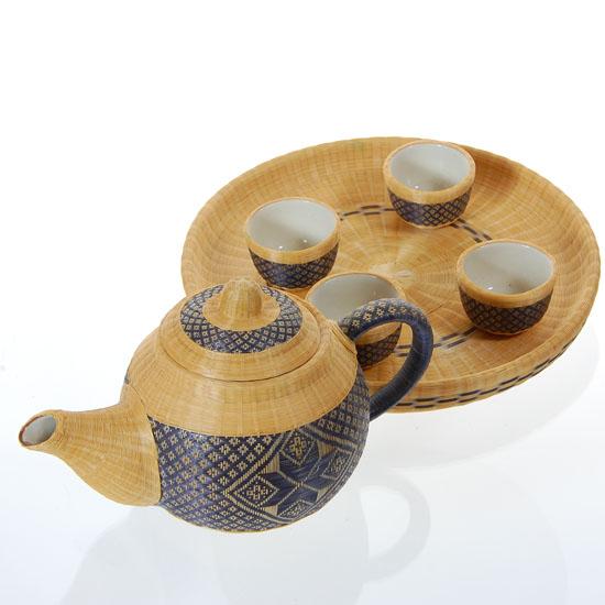 Lidded Teapot, 4 Cups And Tray, Beautiful Intricate Work, 8"
