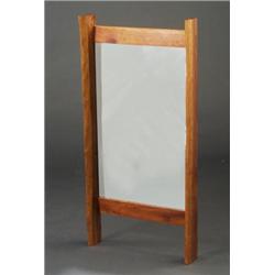 Fine and rare GEORGE NAKASHIMA wall-hanging mirror with free-edge cherry top and bottom rail and mortised-through uprights. (From the estate of the original owner). 22" x 44" x 3 3/4" $2,000 - 3,000